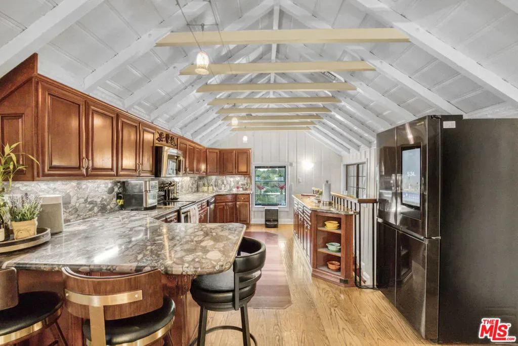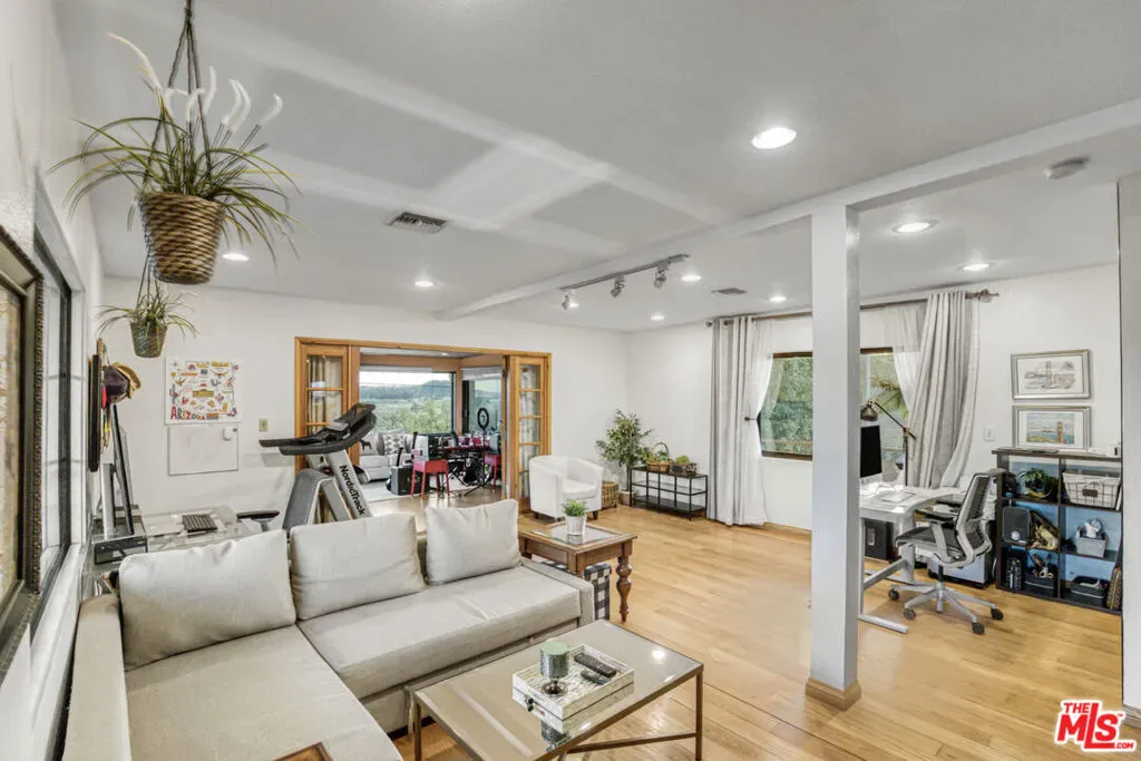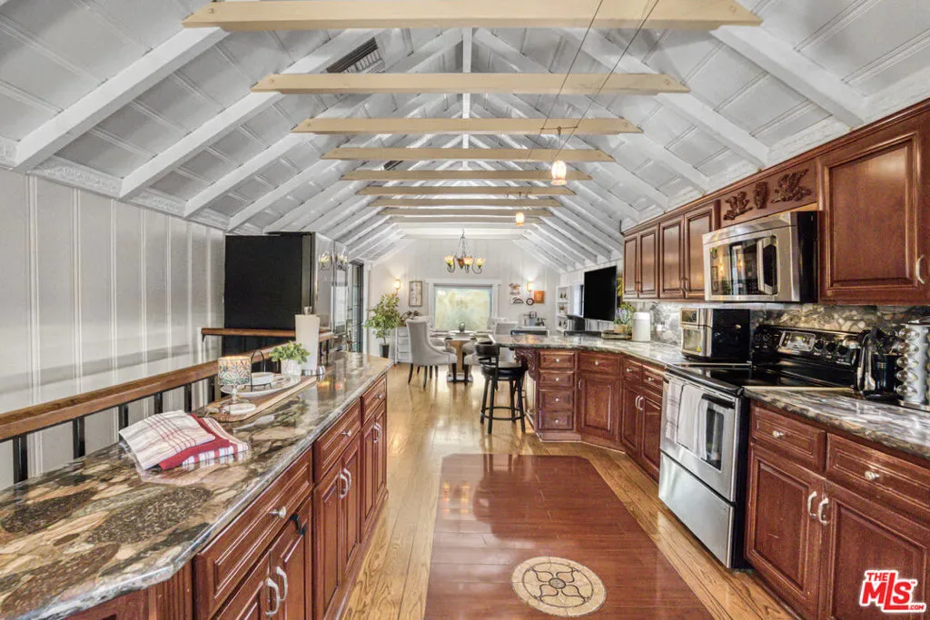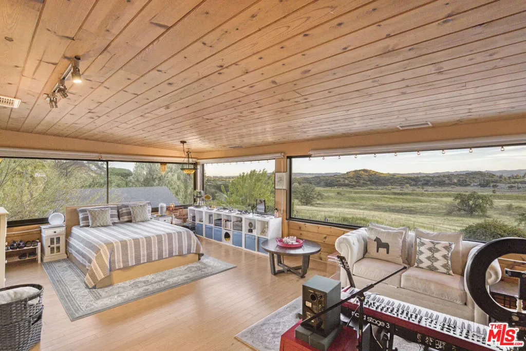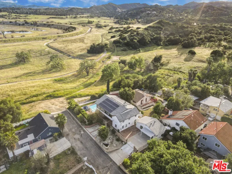 Extraordinary preserve-adjacent view property located on a quiet private street that ends at the Chatsworth Nature Preserve. This expansive property offers 5 bedrooms and 2 bathrooms across a main home and a detached guest house, each with its own private gated entrance. The guest house is currently operating as a successful short-term rental generating attractive supplemental income.The main residence offers approximately 3,300 square feet of living space, including three separate living areas, an upstairs multipurpose room, and a dedicated music studio with oversized windows framing breathtaking sunsets. The second level enjoys sweeping 360-degree views, where nearly every window captures expansive panoramas of the Chatsworth Nature Preserve, a cinematic landscape where numerous motion pictures have been filmed.On the opposite side of the home, enjoy striking views of the iconic Chatsworth red rock formations known as the “Twelve Apostles.”The spacious gourmet kitchen showcases dramatic pitched exposed-beam ceilings and flows seamlessly into the dining room with fireplace, creating warmth and architectural character. Expansive balcony areas extend the living experience outdoors, perfectly positioned to take in the surrounding natural beauty.The private pool retreat features a large sparkling pool, outdoor grilling area, and multiple entertaining spaces ideal for relaxing or hosting gatherings. A gated walkway from the pool area provides direct access to the adjacent Chatsworth Nature Preserve and its scenic hiking trails, offering a rare opportunity to step directly from your property into protected open space.A rare opportunity to own a private, view-rich property with income potential, creative space, and direct connection to nature, offering the feel of a secluded retreat while remaining within Los Angeles County.