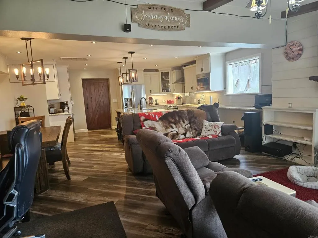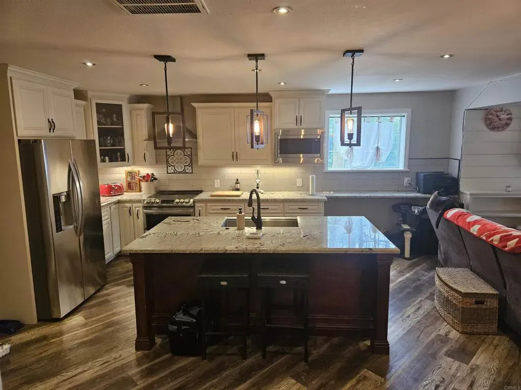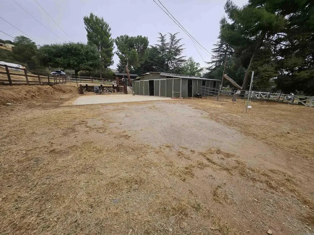 JUST LISTED. Stunning remodeled home on a spacious 25,700 sqft (two parcels) on a corner lot offering exceptional privacy, usability, and versatility. Ideally positioned at the rear of the lot with dual access driveways, this property maximizes functionality for RV parking, horse facilities, and recreational storage – perfect for buyers seeking equestrian property, large lot homes, or multi-use outdoor space. The interior showcases a modern open-concept floor plan with designer finishes throughout. The gourmet chef’s kitchen features a large center island with farmhouse sink, granite countertops, stainless steel appliances, wine refrigerator, and multiple bar seating areas—ideal for entertaining and everyday living. The inviting living room offers warmth and charm with a wood-burning stove and custom mantel, creating a cozy yet elevated ambiance. The split-bedroom layout enhances privacy, with the primary suite and secondary bedroom situated separately from the front bedroom – ideal for guest quarters, home office, or multi-generational living. Both the primary and front bedrooms provide direct outdoor access, blending indoor-outdoor California living. Step outside to enjoy mature shade trees, expansive usable land, and a fully equipped 3-stall horse barn with tack room, concrete breezeway with drainage, and additional trailer/RV pad. This property is a rare opportunity for horse owners, outdoor enthusiasts, or buyers needing space for toys, equipment, or expansion. Located in a highly desirable area known for horseback riding trails, hiking, and peaceful rural lifestyle, yet still within convenient access to nearby amenities.