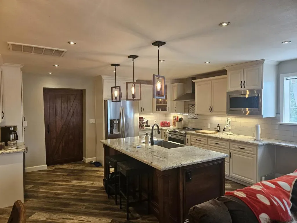 Stunning remodeled home on a spacious 25,700 sqft (two parcels) on a corner lot offering exceptional privacy, usability, and versatility. Ideally positioned at the rear of the lot with dual access driveways, this property maximizes functionality for RV parking, horse facilities, and recreational storage – perfect for buyers seeking equestrian property, large lot homes, or multi-use outdoor space. The interior showcases a modern open-concept floor plan with designer finishes throughout. The gourmet chef’s kitchen features a large center island with farmhouse sink, granite countertops, stainless steel appliances, wine refrigerator, and multiple bar seating areas—ideal for entertaining and everyday living. The inviting living room offers warmth and charm with a wood-burning stove and custom mantel, creating a cozy yet elevated ambiance. The split-bedroom layout enhances privacy, with the primary suite and secondary bedroom situated separately from the front bedroom – ideal for guest quarters, home office, or multi-generational living. Both the primary and front bedrooms provide direct outdoor access, blending indoor-outdoor California living. Step outside to enjoy mature shade trees, expansive usable land, and a fully equipped 3-stall horse barn with tack room, concrete breezeway with drainage, and additional trailer/RV pad. This property is a rare opportunity for horse owners, outdoor enthusiasts, or buyers needing space for toys, equipment, or expansion. Located in a highly desirable area known for horseback riding trails, hiking, and peaceful rural lifestyle, yet still within convenient access to nearby amenities.