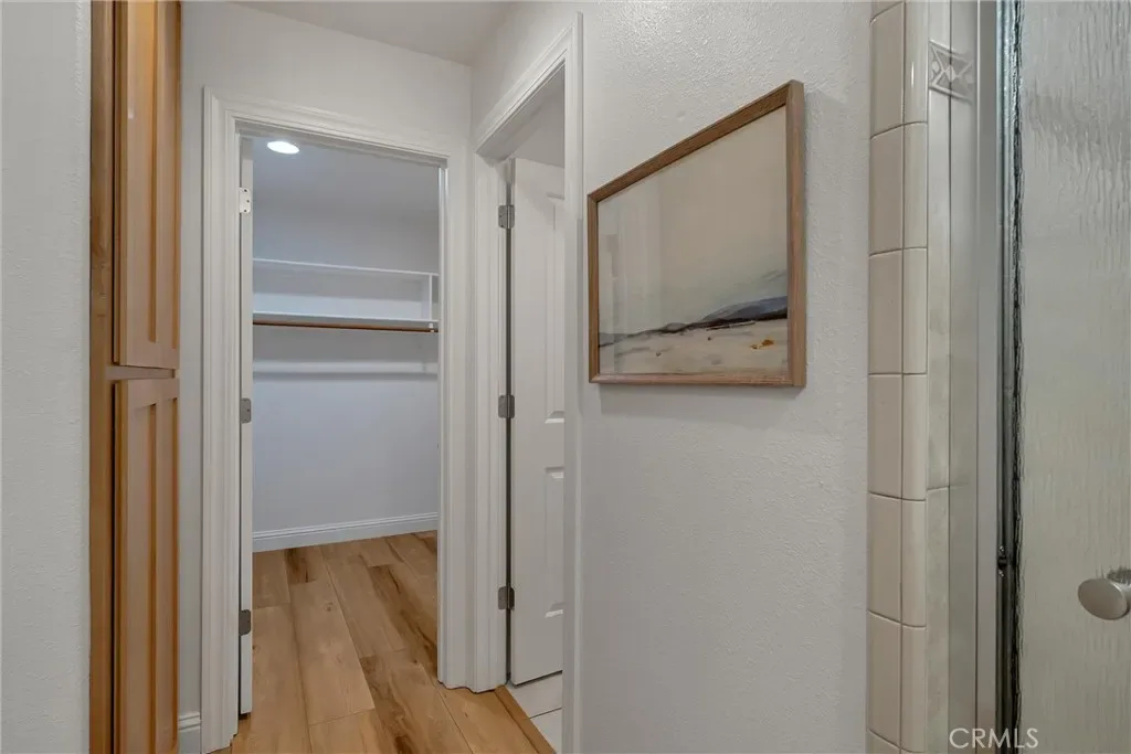 The lower level continues to impress with an incredibly spacious layout. You’ll find an additional storage area that could easily be used for crafts, hobbies, or extra organization. The large guest bedroom features a walk-in closet and sits next to a full guest bathroom. At the end of the hall is the expansive primary suite, complete with an en-suite bathroom and its own private balcony overlooking the peaceful natural setting.
