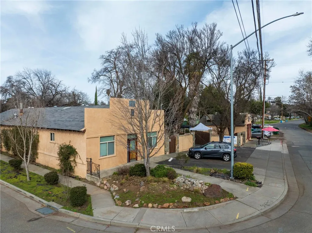 Located in the heartbeat of Chico, California, this historic property is adjacent to Little Chico Creek on Humboldt Avenue. Fully restored to utilize its full potential, this property has two buildings that have been maximized with wholesale, retail and living space. The smaller of two buildings serves as a retail café and bakery with a baker’s kitchen, outdoor patio, parking and utilities. The outdoor patio is prepared for future development to convert it to an enclosed expansion to the cafe, if desired. The outdoor patio is private with vine covered ornate vintage wrought iron fencing and stone walls. You will enjoy the year-round creek and natural beauty of the riparian location. The second large building has roughly 1600 sq/ft commercial warehouse space with epoxy covered wood flooring and an additional 400 appx. sq/ft of finished office space with HVAC and retail entrance. There is about 800sq/ft of usable, finished basement for storage. All buildings have 220/240amp, 3-phase power and the warehouse has a 2-inch gas line for commercial usage. Located at the end of the warehouse is a 2-bedroom garden apartment, with new HVAC. This has a nice private entrance, private patio and backyard. The compound was restored to its current grandeur in 2005. During the renovations the entire property was renovated to include new sewer lines, plumbing, electrical, patios, ingress and egress, parking, windows, stucco, sidewalks and city lights were installed to 2005 requirements. The owner took pride in bringing back the property to its full potential, restoring its rich history, for many years to come. Great investment opportunity to own fully leased property, in the heart of Chico!