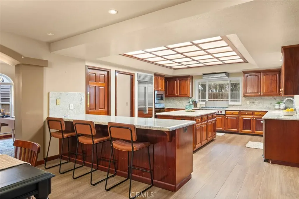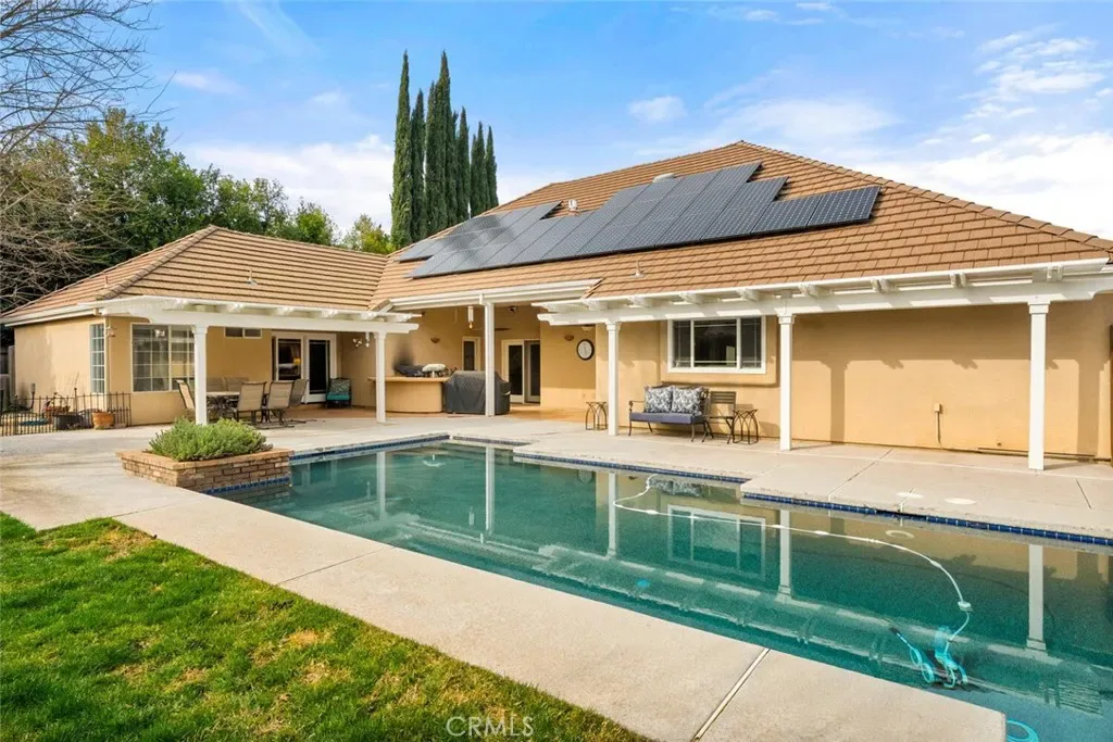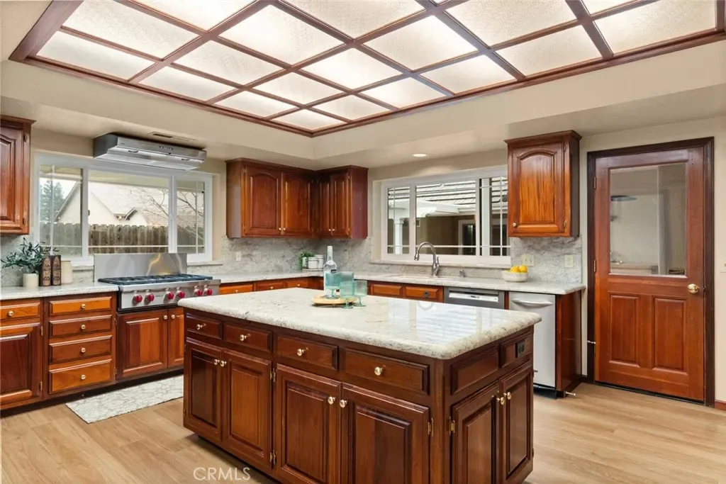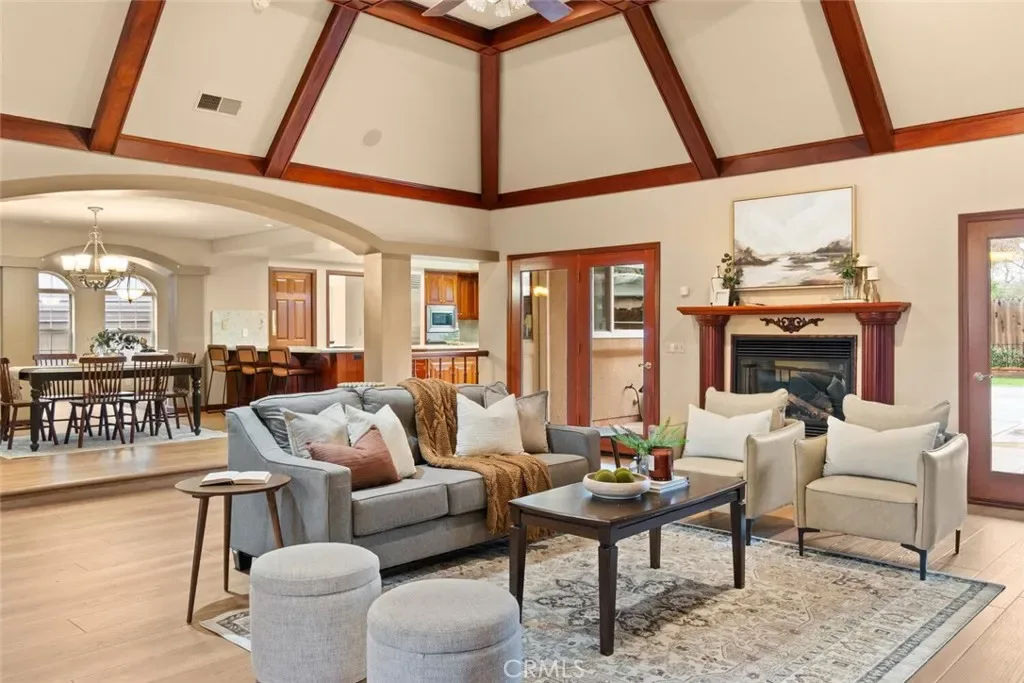 This well-built North Chico home offers thoughtful design, quality finishes, and spaces that truly work for everyday living and entertaining. Inside, you’ll find new LVP flooring throughout, architectural archways, exposed beam ceilings, and a spacious living room with a cozy fireplace. The kitchen is both functional and stylish, featuring granite countertops, custom wood cabinetry, a Wolf gas cooktop, Sub-Zero refrigerator, large center island, walk-in pantry, and breakfast bar. A formal dining room sits nearby, along with an additional formal living space that adds flexibility for hosting or gathering. A dedicated office with built-in shelving provides a comfortable work-from-home setup. The primary suite offers a private retreat with backyard access, walk-in closets, dual vanities, and a tiled walk-in shower. Three additional bedrooms are generously sized, and the home also includes ceiling fans throughout, an indoor laundry room, and an attached three-car garage. Recent upgrades include a newer furnace, air conditioning system, and water heater, adding peace of mind and efficiency. Out back, the property is designed for year-round enjoyment with a covered patio, Pebble Tec pool, outdoor kitchen and bar, plus a storage shed and garden area. Located in a desirable North Chico neighborhood, this home combines comfort, function, and standout amenities in one complete package.