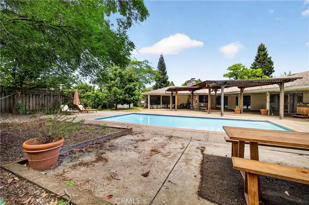 The home features a classic layout with large, functional rooms and plenty of natural light, still in original condition and ready for your personal updates and vision to truly make it your own. Outside, enjoy the private backyard oasis with a sparkling swimming pool, ideal for warm Chico summers, family fun, and entertaining.