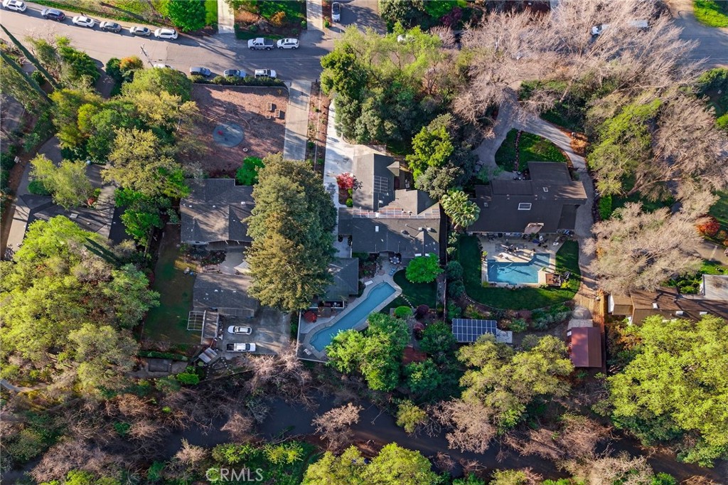 Large House, lot, 75 foot full-length lap POOL with swim-outs. This 3284 square foot custom house is TURN KEY and REMODELED with a leathered granite chef’s kitchen .72 acre CREEK FRONT parcel in a premium established neighborhood. RV and BOAT PARKING, detached 2 car GARAGE with SHOP, shed and sauna. Private and fully landscaped yet walking distance from downtown restaurants, galleries, year-round Farmer’s Market and Chico State University. House has 2 wings offering a perfect in-law floor plan. A MASSIVE PRIMARY SUITE on one-side has its own sitting area, walk-in closet with built-ins, several other closets, coffered ceilings, skylights and a lush secluded patio. It also has a sunny little office or perhaps Nursery/play room just off the primary suite. On the other side of the home you will find a second living room/family room, a lovely guestroom and another primary bedroom with ensuite bathroom. This primary has a door to the pool and sauna. The formal dining room has views of the beautiful lawn and fig trees. The spacious open great room has multiple sitting areas and a cozy gas fireplace, newer LVT floors and views of the pool, weeping willow and fruit trees in the big back yard. A beautiful redwood deck over-looks Big Chico Creek, firepit, multiple covered patios and porches. Freshly poured concrete driveway with several parking areas. Fresh exterior paint. Owned solar array is older but PG&E bills are still very reasonable. Whole house fan adds to efficiency. New 50 year roof in 2018. 16 skylights make this home glow with natural light. Rich loamy soils in the area have put several of the neighboring homes on the Chico Rose Garden tour. A stroll through the orchards to the West leads to Rose Bridge and scenic Bidwell Avenue.