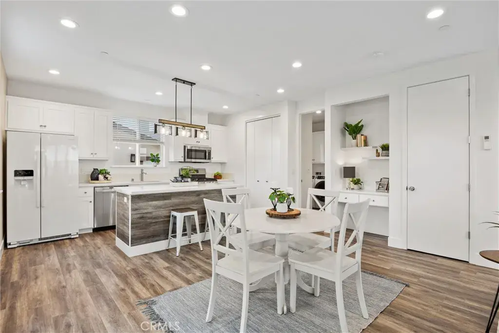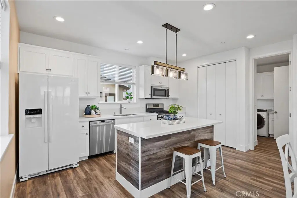 Built in 2021, this well-maintained 3-bedroom, 2.5-bathroom, two-story 1,560 SF home is located within Meriam Park and sits on one of the larger lots in the community. The ground floor features a spacious kitchen with an island and quartz countertops, a built-in desk area, and an open living space with two large storage closets. A utility laundry area with a half bathroom and abundant storage is also conveniently located on the main level.