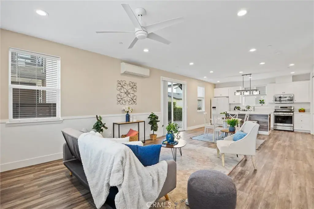 Upstairs, all three bedrooms are thoughtfully arranged, including a primary suite with a private patio balcony. The home is equipped with energy-efficient mini-split heating and cooling systems in each bedroom and the living area.