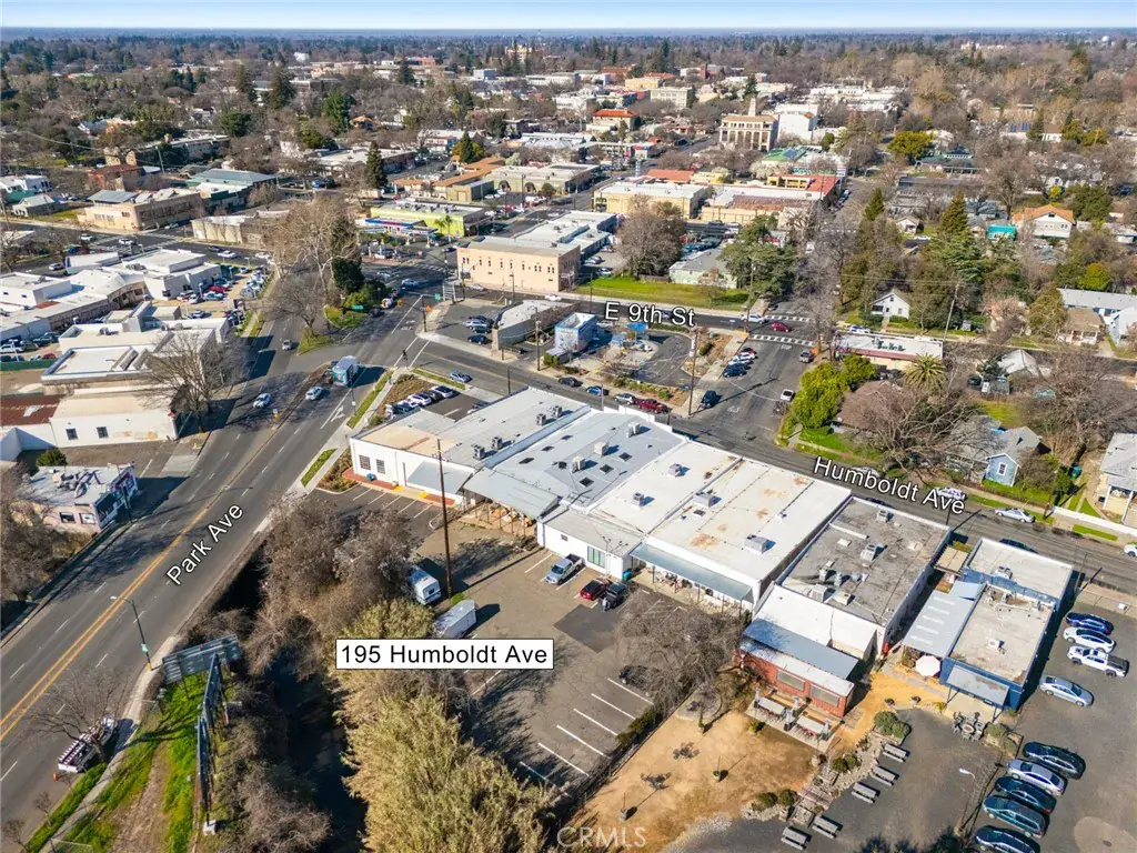Off the charts on the cool factor! Industrial Chico Chic Flex space at the historical hub area where Humboldt Ave. meets Main Street. 195 Humboldt Ave. Unit B & C is approximately 7,627 sq. ft. of commercial office space where innovation meets design at an affordable price. Available starting June 1st, 2026. Zoned DS Downtown South. Many allowed uses. No AI was used in the making of this property description. Nothing but all human brain powered cornball creativity.