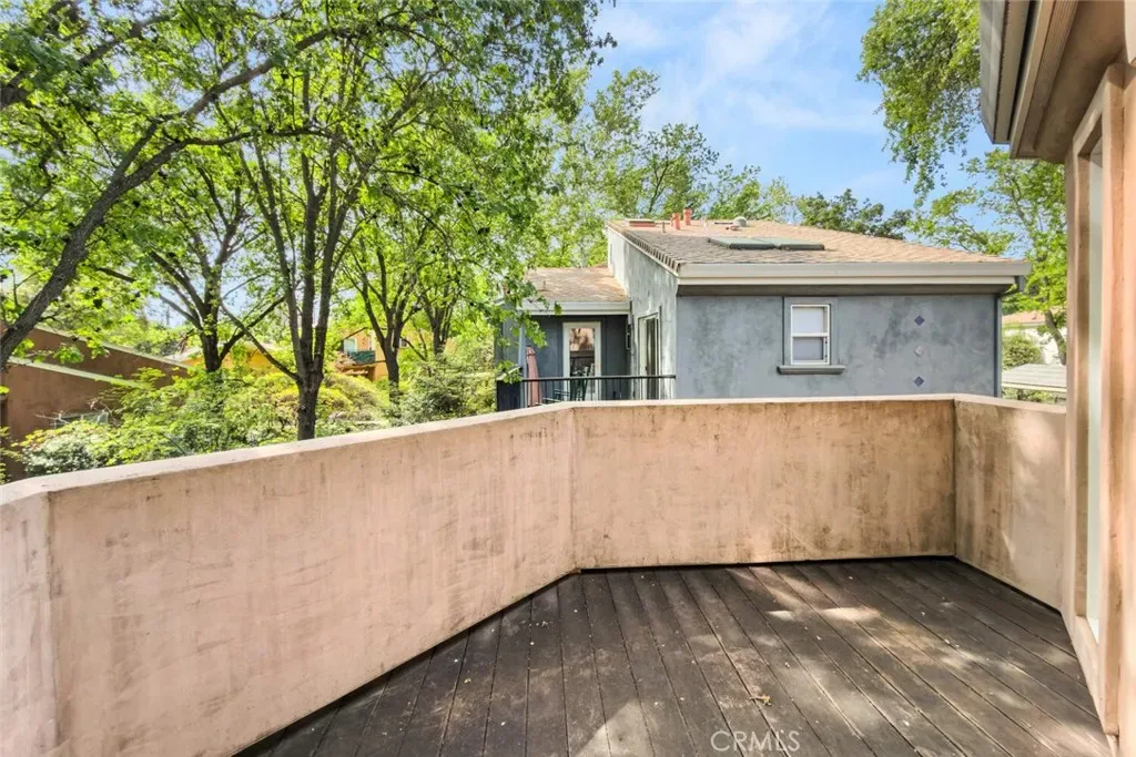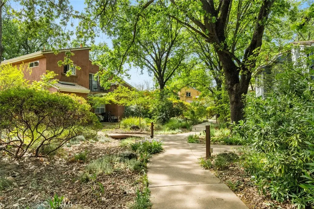 Nestled in the heart of Chico, 1997 Wild Oak Lane offers a unique opportunity to be a part of Valley Oaks Village in a thoughtfully designed Cohousing community—where connection, sustainability, and modern living come together seamlessly. Located just blocks from Bidwell Park in Chico, this home provides a rare blend of private comfort and shared amenities that foster a true sense of community. This inviting home features a bedroom and bathroom downstairs and a large living room with stunning bamboo flooring. The open concept kitchen includes granite countertop overlay, stainless steel appliances, and plenty of cabinetry. Check out the beautiful all inclosed sunroom that invites an abundance of natural light into the home. Upstairs offers a newly remodeled bathroom with Jacuzzi tub, quartz countertops, and laminate flooring. One of the two bedrooms features a secondary loft, perfect for a twin bed or extra storage. The primary bedroom highlights its own balcony and an en suite bathroom with a large tiled shower. Laundry closet is located upstairs and includes a flood stop system. In the backyard you will find patio pavers perfect for an herb garden or gathering space, and a newer 6×8 shed. Plug your EV car into the newly installed level 2 wall box with a 40 amp charger. As part of a Cohousing development, residents enjoy access to shared amenities such as a pool, sauna and an outside shower, bike storage sheds, a woodworking shop and craft room, large grassy area with a small playground, community garden, and gathering spaces—perfect for hosting events, shared meals, or simply connecting with neighbors. The community common house features an industrial sized kitchen, library, lounge room with wood burning stove, game room, laundry room, and even extra guest bedrooms. The community is intentionally designed to promote collaboration while still maintaining the privacy of individual homes. If you’re seeking a more connected way of living, 1997 Wild Oak Lane presents a truly special opportunity in one of Chico’s most unique residential townhouse communities.