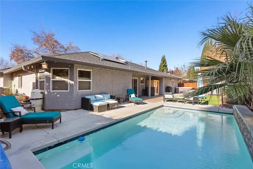 This beautifully designed home is located in the highly desirable Amber Grove neighborhood, just a couple of blocks from Peterson Park. Built by Bill Webb, this home features one of the most sought-after floor plans. On one side of the home, you’ll find three spacious bedrooms and two bathrooms, while the opposite wing features a private bedroom and bathroom—ideal for guests, extended family, or a home office setup. The home welcomes you with easy-to-maintain landscaping in both the front and backyard, creating great curb appeal without the extra upkeep. Inside, the large great room impresses with high ceilings and a charming brick fireplace, creating a warm and inviting gathering space. Just off the great room is an additional open room that offers flexible use as a formal dining area, second living room, or game room. The family room flows seamlessly into the kitchen, making it perfect for entertaining. The kitchen offers lots of counter space, a convenient breakfast bar, and stainless steel appliances. A large dining area filled with natural light features numerous windows and a built-in dining bench for cozy meals and gatherings. On the private suite side of the home, you’ll also find a large laundry room complete with storage and a utility sink. The separate bedroom and bathroom in this wing provide an excellent retreat for guests or multi-generational living. The primary suite is truly impressive—HUGE in size with its own private access to the patio, a large walk-in closet, and a spacious en-suite bathroom. Two additional bedrooms and another bathroom complete this wing of the home, all generously sized. Step outside and you’ll instantly understand why the backyard is best described in one word: RELAX. The low-maintenance landscaping surrounds a sparkling pool, hot tub, and even a sauna—creating your own private retreat. There’s also a large storage shed and access to the back levee, adding even more convenience and outdoor enjoyment. Additional highlights include owned solar and a new roof installed in 2020. With its spacious layout, inviting outdoor living, and prime location close to parks, shopping, and schools, 213 Denali Drive offers the perfect combination of comfort, functionality, and lifestyle. It’s truly a beautiful place to call home in one of Chico’s most wonderful neighborhoods.