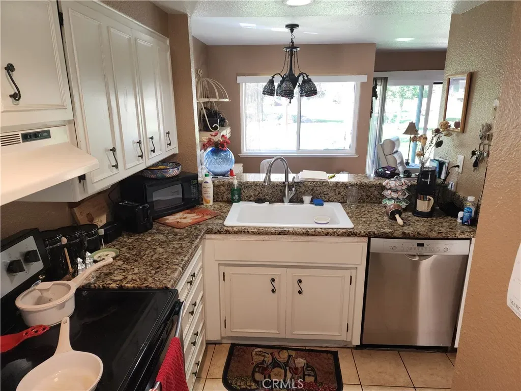 The kitchen features granite countertops, laminate flooring, dishwasher, disposal, and an electric oven and stove. Upstairs you’ll find two spacious bedrooms with generous closets—one with organizer shelving—and a full bathroom with upgraded flooring and a shower/tub combo. Vaulted ceilings and abundant natural light create an airy feel throughout the upper level.
