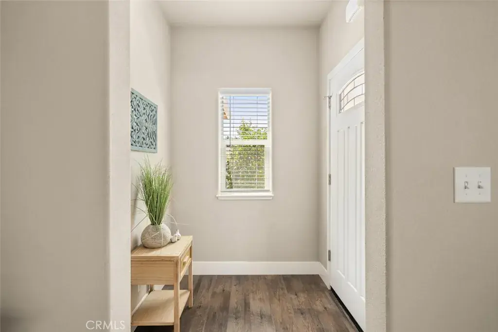 Constructed in 2019 with owned solar, and showcasing exceptional attention to detail, this home rests on one of the most spacious lots within this serene neighborhood. From the moment you step inside, you’re welcomed by a bright, modern interior featuring luxury vinyl plank flooring, 9-foot vaulted ceilings, soft neutral tones, and a highly desirable open-concept layout that creates an airy, inviting atmosphere. The thoughtfully designed kitchen is perfect for everyday living and entertaining alike, showcasing granite countertops, rich wood cabinetry, sleek modern appliances, a gas range, and a spacious center island with breakfast bar seating. Retreat to the generously sized primary suite, complete with elegant tray ceilings, private backyard access, dual closets, and a spa-inspired bathroom offering double sinks and an oversized walk-in shower. Additional highlights include recessed lighting, ceiling fans throughout, a separate indoor laundry room, owned solar, and a spacious two-car garage. Step outside to a newly landscaped backyard designed for both relaxation and fun. Enjoy summer evenings under the covered patio with ceiling fan and recessed lighting, play on the lush green lawn, or take advantage of the extra space to create your own garden oasis. With its extensive list of amenities, prime location, and fresh, contemporary feel, this home truly offers the ideal setting to unwind and enjoy life.