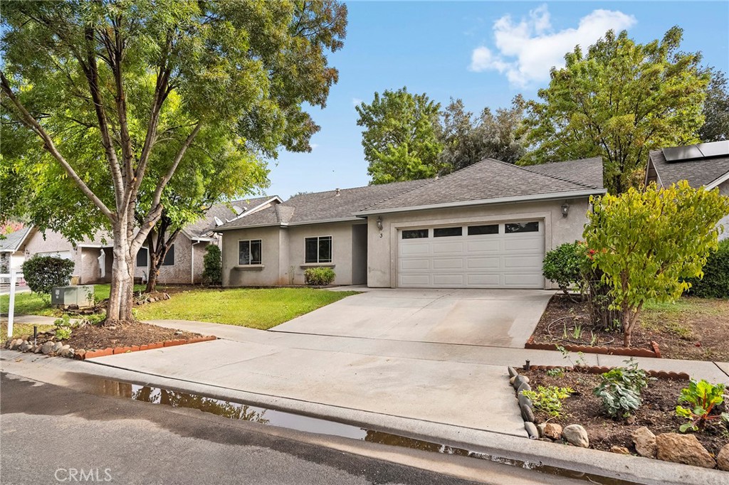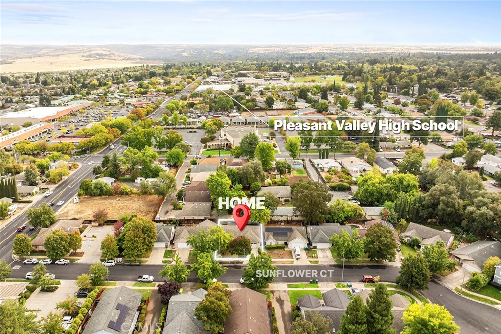Welcome to 3 Sunflower Court — a charming home in an unbeatable location! Situated on a quiet cul-de-sac and just minutes from great schools, Upper Bidwell Park, Wildwood Park, and convenient shopping, this property offers the perfect blend of comfort and convenience. Inside, the home is light and bright with a sunny living room featuring high ceilings and a cozy fireplace that creates a warm and inviting atmosphere. The open layout flows into the large kitchen and dining area and features beautiful cabinetry, stainless steel appliances, lots of counter and cabinet space, and even a charming built-in desk area — ideal for homework, meal planning, or a convenient home workspace. The primary suite offers vaulted ceilings, a private slider to the back patio, a walk-in closet and private bathroom, while the spacious secondary bedrooms provide flexibility for family, guests, or a home office.