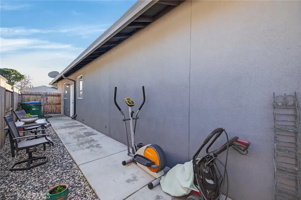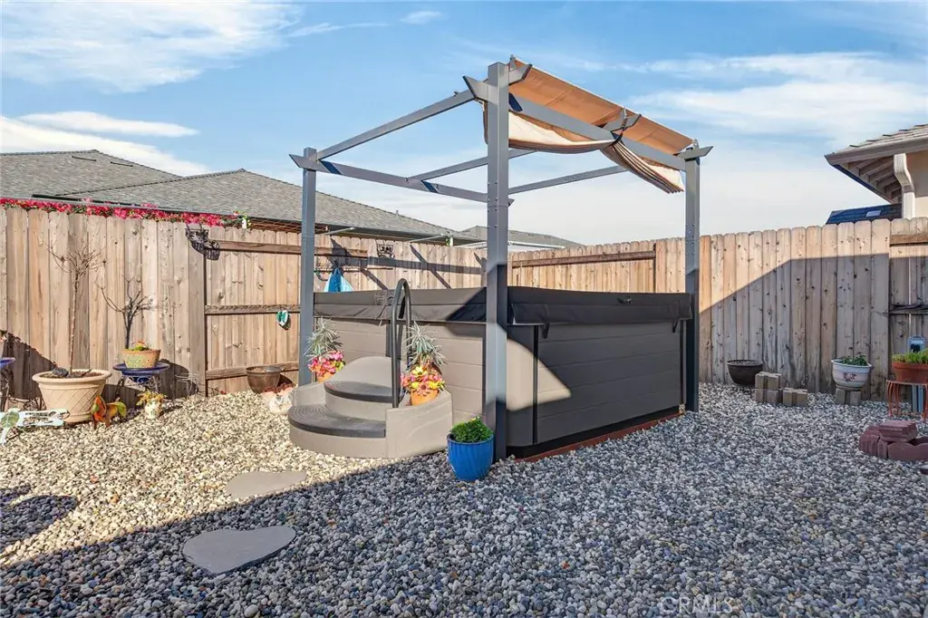 The interior flows seamlessly to the outdoors through an upgraded glass back door, protected by storm doors on both the front and rear for added durability. The larger backyard is an entertainer’s dream, featuring added cement walkways extending to the side of the house and a large hot tub with dedicated 220 wiring.