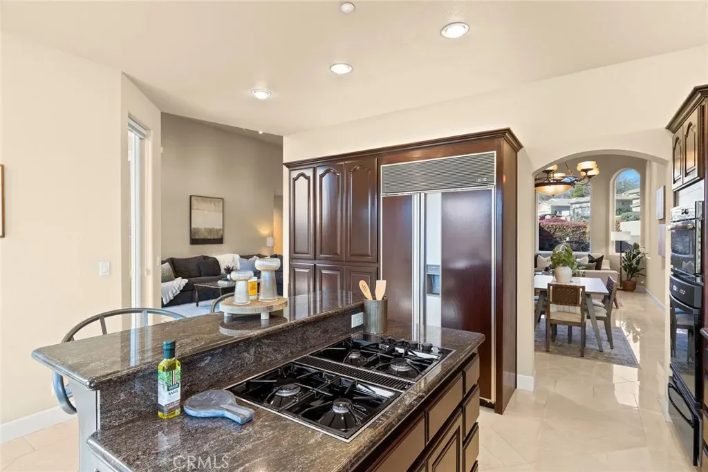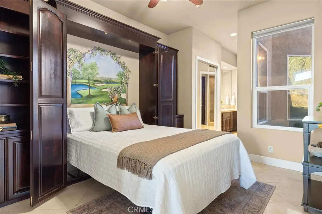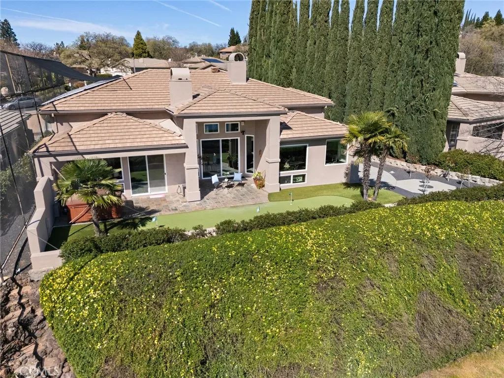 Located in the exclusive Arroyo Greens enclave within the gated Canyon Oaks community, this 3-bedroom, 3-bath home sits along the 5th hole of Canyon Oaks Golf Course and enjoys beautiful views of the surrounding foothills. A welcoming front courtyard patio with fountain creates a peaceful entry. Large windows bring in abundant natural light, and the kitchen and living room are positioned to capture the golf course views, creating an open and inviting living space. The living room features a fireplace, adding warmth and character. The spacious kitchen includes a flush-mounted Sub-Zero refrigerator and generous counter space, while the dining area features an extra-large temperature-controlled wine refrigerator. A whole-home audio system with speakers throughout the interior and extending to the back patio enhances everyday living and entertaining. The third bedroom includes a Murphy bed, allowing the space to function as a guest room or easily convert to an office or den. The main bedroom includes its own fireplace, creating a comfortable retreat. Enjoy the back patio with hot tub and views of the fairway and surrounding foothills. The property includes custom golf-ball protective fencing designed to help safeguard the home while maintaining the views. The low-maintenance yard features a private putting green. Additional highlights include an owned solar system, whole house fan, water softener, natural gas BBQ connection, and an attached garage with space for cars and a golf cart. A great opportunity to enjoy golf course living in one of Canyon Oaks’ most desirable neighborhoods.