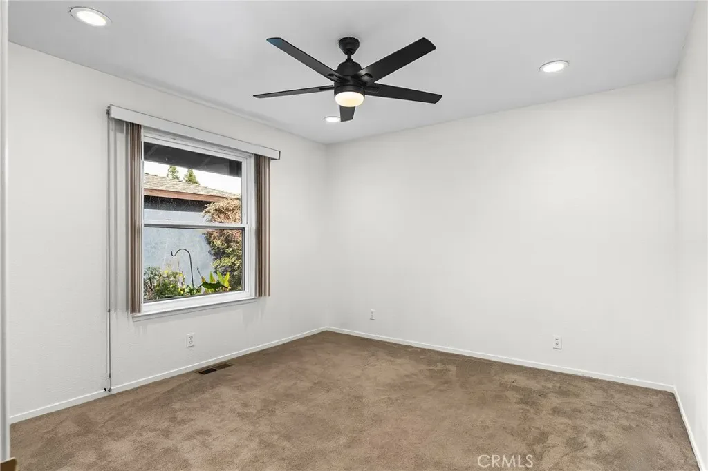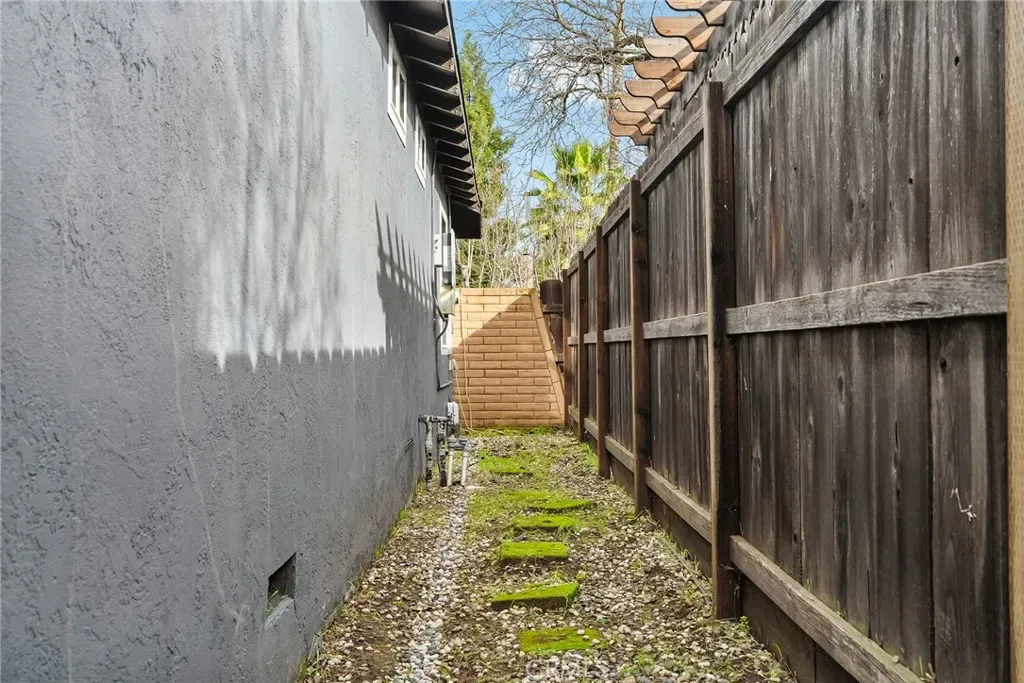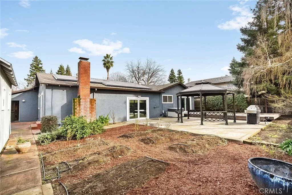 Welcome to 33 Quista Drive, a truly special North Chico home where mid-century charm meets modern design, effortless entertaining, and owned solar for energy efficiency. From the moment you arrive, the curb appeal pulls you in, clean lines, architectural interest, and a timeless look that sets this home apart. Before even stepping inside, you’re greeted by a serene courtyard-style entry with a garden space that creates a calming transition from the outside world. Inside, the home opens into a stunning, light-filled layout designed for gathering, hosting, and everyday living. The dining area flows seamlessly into a sunken living room, while an elevated den-style nook overlooks the space, creating a cozy retreat perfect for reading or unwinding beside the electric fireplace insert. Two large sliders frame the living space, drawing your eye outdoors and reinforcing the home’s incredible indoor-outdoor connection. At the heart of it all is the showstopping kitchen, beautifully remodeled with white flat-front cabinetry, bold black quartz countertops, brushed black onyx hardware, and stainless steel appliances. A pass-through window with bar seating makes entertaining effortless, while an impressive wall of built-in cabinetry nearby offers incredible storage for games, serving pieces, and everything in between. The bedroom layout offers thoughtful separation and comfort. The primary suite is a true retreat, featuring a spacious bedroom and a stunning en-suite bath with dual sinks set into quartz countertops, a jetted soaking tub, and a dual-head shower with rainfall feature. Just off the primary is a massive deck, perfect for morning coffee or evening wind-down time. Additional bedrooms are generously sized, including one with built-in shelving ideal for an office or creative space. The remodeled hall bath features a sleek walk-in tile shower. The backyard is equally impressive, designed for connection and celebration. Enjoy farm-to-table living with established herb and vegetable gardens on drip irrigation, a large concrete patio with an octagonal gazebo for gatherings, and an expansive deck that invites long evenings with friends and family. Two separate storage structures offer flexibility for hobbies, a gym, or extra storage. Centrally located with easy access to all of Chico, 33 Quista Drive is a rare find, stylish, thoughtfully updated, and deeply loved. Homes like this don’t come along often, and when they do, they don’t last long.