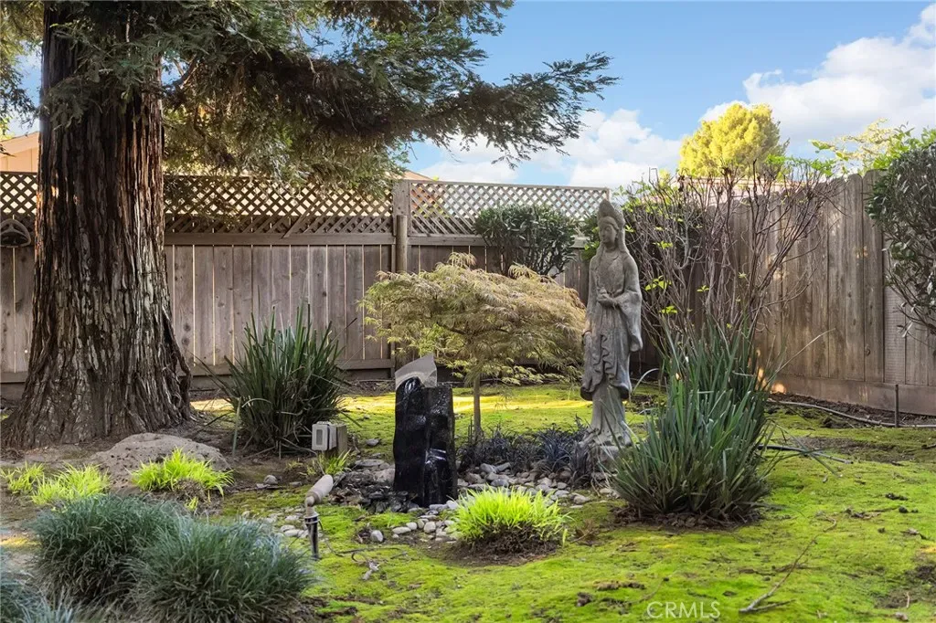 Outdoors, the property truly shines. Enjoy a peaceful retreat with a meticulously manicured yard, complete with stunning Japanese maples, a Zen garden, and water fountains and sculptures that promote relaxation. The outdoor sculptures and water fountain are beautifully illuminated in the evening, creating the perfect ambiance. The landscape is thoughtfully designed with a drip irrigation system throughout, ensuring easy maintenance and year-round care. Entertain or unwind under the screen-covered patio, surrounded by Trex decking and tranquil garden views. With its own private patio access, the primary suite offers added flexibility and a sense of privacy while still being seamlessly connected to the main outdoor living space.