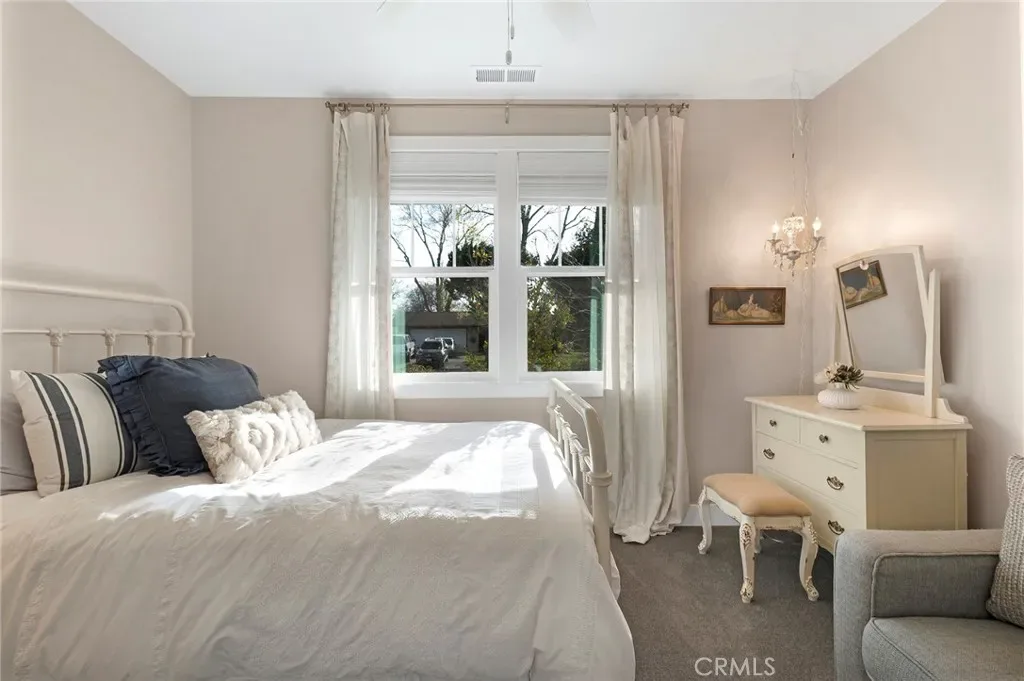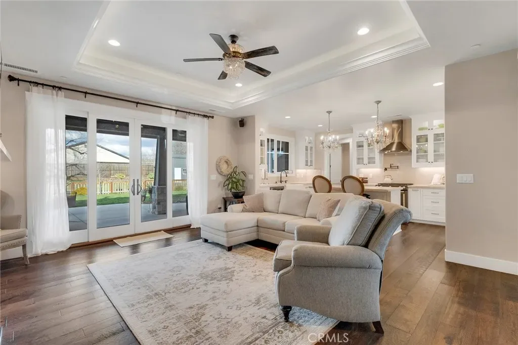 Welcome to a rare opportunity to own a custom-built masterpiece set on a generous half-acre lot. Crafted by its owners with an uncompromising commitment to quality and beauty, this extraordinary residence offers a level of detail simply not found in a standard spec home. From the moment you arrive, lush landscaping and a stamped concrete walkway lead to a grand covered front porch. Step through a stunning Knotty Alder front door into a home featuring smooth-coat drywall, soaring 9-foot solid wood interior doors, and wood-encased windows dressed in custom shades — every inch exudes intentional elegance. The living room stuns with a tray ceiling, crown molding, a gas fireplace with Taj Mahal leathered slab surround, and an impressive 117” x 96” Milgard sliding door that floods the space with natural light. The chef’s kitchen boasts KitchenAid black stainless appliances, a custom hood, pot filler, Oak Ridge shaker cabinets, antique chandeliers over the island, and a spacious 7.5’ x 7’ walk-in pantry. The primary suite features spa-inspired finishes including 24×24 porcelain tile, a soaking tub, tiled step-in shower, and a one-of-a-kind custom vanity with solid surface countertops. Throughout, you’ll find engineered hardwood floors, 5” baseboards, Carrara porcelain tile, Honeywell 60HZ air cooled Generac generator and a whole-house fan. The home is fully ADA-compliant in all hallways, doors, and the bath. Outside, a 27.5’ x 10’ covered patio with recessed lighting is perfect for year-round entertaining. A 20’ x 25’ workshop, 30’ carport, oversized two-car garage, and wide driveway complete this exceptional property. A tankless water heater adds efficiency. This is not just a house — it’s a legacy built with heart and skill. Opportunities like this in Chico are extraordinarily rare.