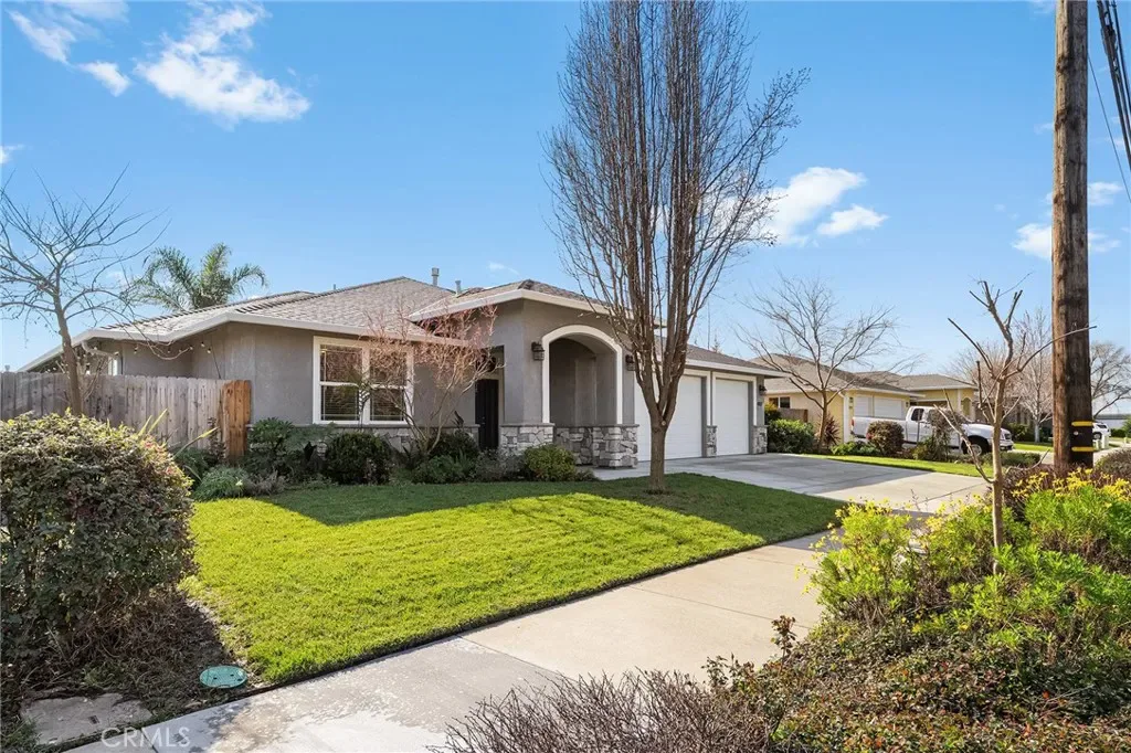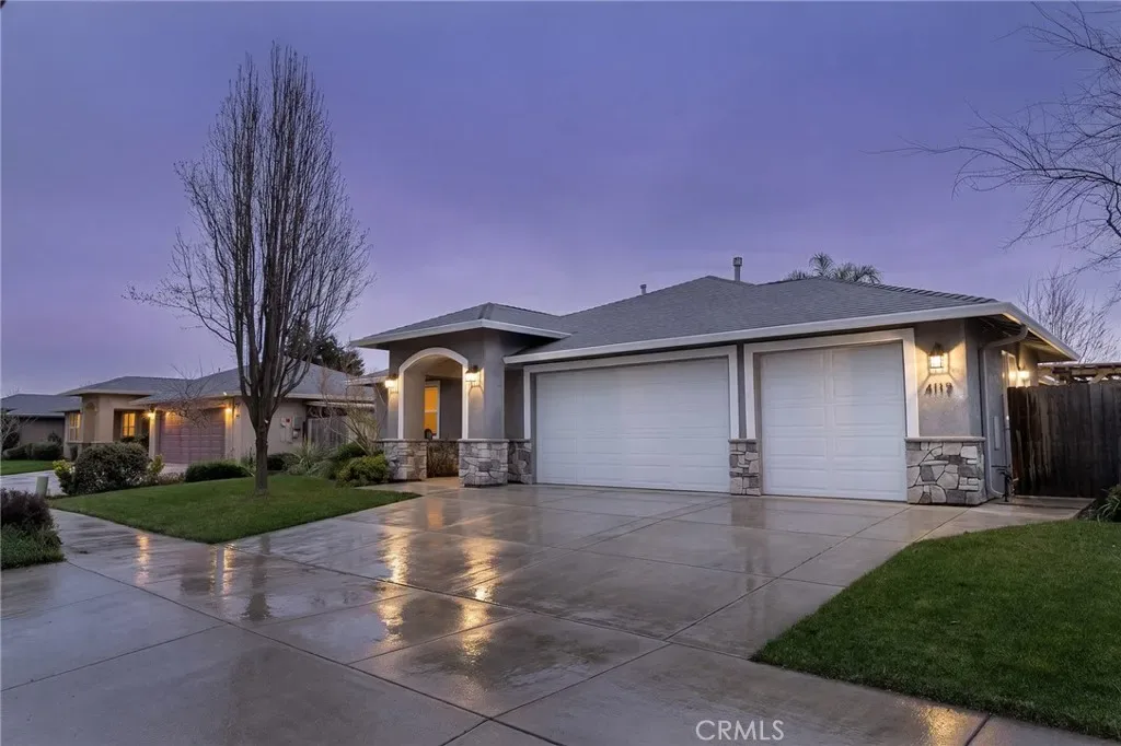 Welcome to 4117 Nord Hwy — a beautifully designed home built by Bill Webb, offering quality craftsmanship, owned solar, a 3-car garage, and a spacious lot in a desirable North Chico location. Step through the inviting entry and into a light-filled living space that instantly feels like home. The great room features brand new carpet and a cozy gas fireplace and large windows that bring in lots of natural light, creating a warm and comfortable atmosphere for everyday living or entertaining. The kitchen is thoughtfully laid out with abundant cabinetry, a functional island for prep and gathering, granite countertops, beautiful tile backsplash, stainless steel appliances, and a pantry — blending style and efficiency in a way that truly works for daily life. Privately situated at the end of the hall, the primary suite serves as a relaxing retreat. Enjoy a dual-sink vanity, walk-in tile shower, spacious walk-in closet, and direct access to a private covered patio — perfect for quiet mornings or unwinding at the end of the day. The lot offers plenty of space to spread out and enjoy. You’ll love the raised garden beds, inviting firepit area, covered patio for outdoor dining, putting green and expansive yard with room for play, pets, or future possibilities. Located on the north side of Chico near Degarmo Park, with convenient access to Hwy 99, shopping, and Shasta Elementary School, this home combines comfort, space, and an excellent location.