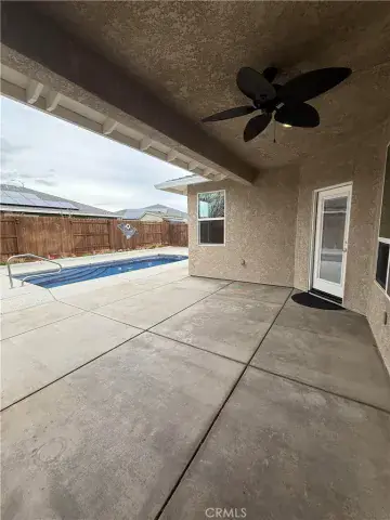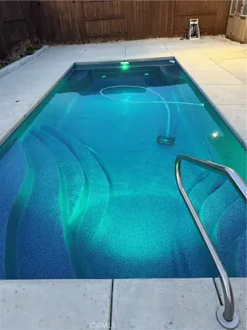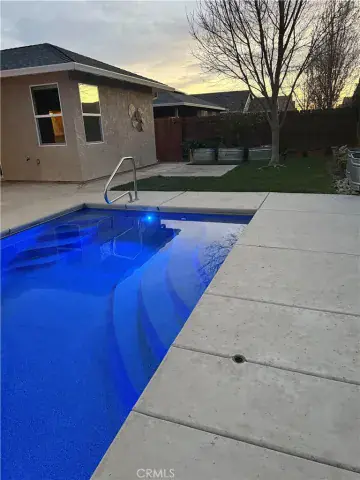 Beautiful 2019 Bill Webb home with custom built inground saltwater pool that is move-in ready. Features include owned solar, an open floorplan, vaulted ceilings, granite countertops, kitchen pantry, eating bar, dining area, a focal place fireplace, gas stove top, tankless water heater, custom cabinetry, decorator tile and new carpet. Master bedroom is a retreat with lots of storage, closets, vaulted ceilings, and a private access to pool area and backyard. Spa ready and there is even a rare side yard big enough for parking for extra vehicles, rvs, or boats, depending on size. Delight your green thumb with raised garden beds and a green house. Sit under the covered patio to enjoy hot summer days while playing in the low maintenance pool. The large 2 car garage is finished and has with premium flooring. To top it all off, this home is only 3 doors down from the popular Hartley Park open space, playground, and walking path. The new Aquatics center is being built less than 1/2 mile away, popular schools and restaurants nearby too.