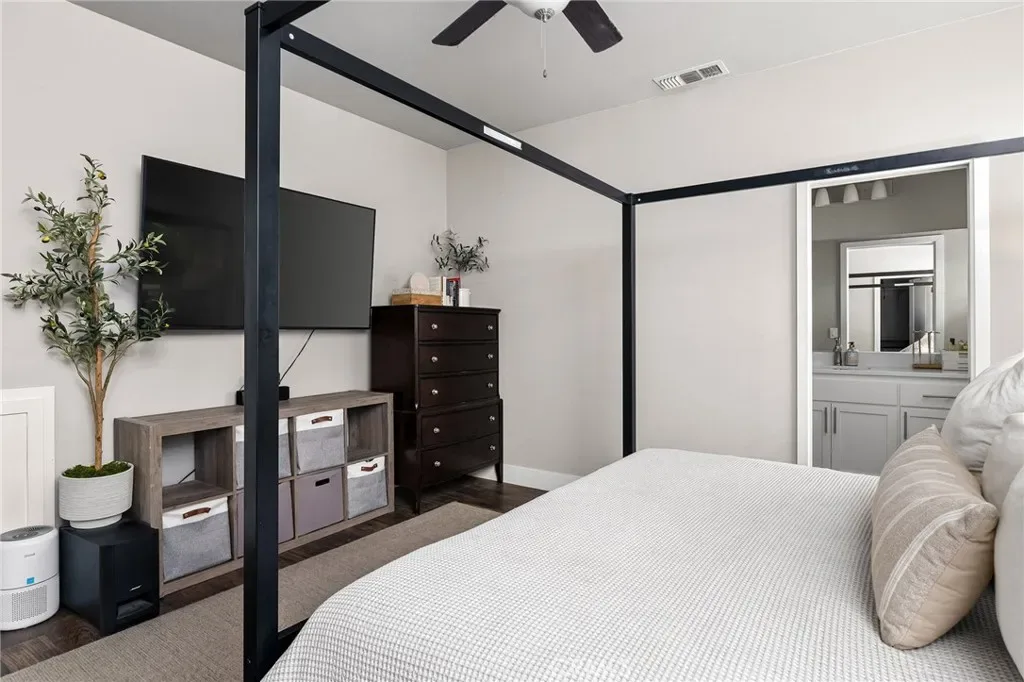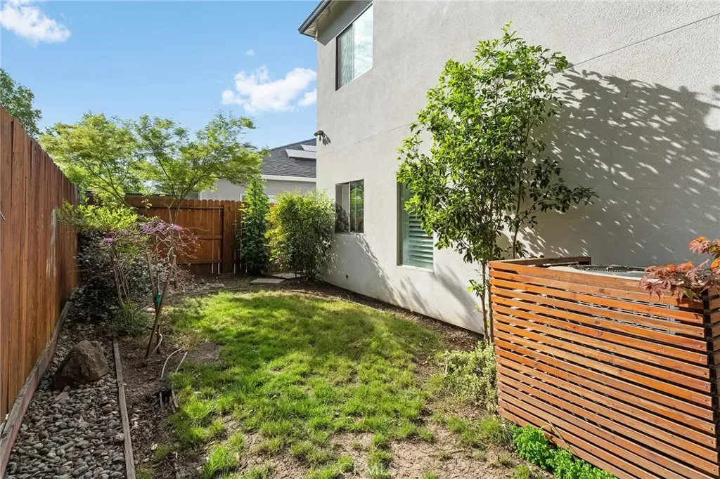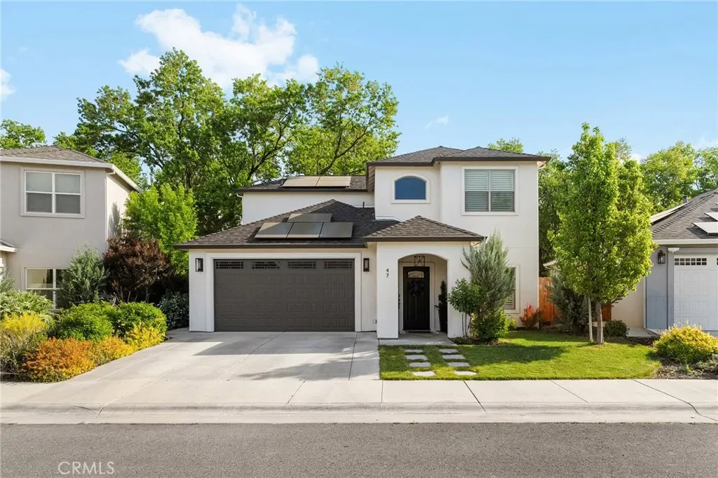 Welcome to 47 Jersey Brown Circle, a home where thoughtful design, modern style, and everyday comfort come together in a way that simply feels right. Tucked away on a quiet street in North Chico, this newer-built home offers a refined blend of elevated finishes and effortless livability. From the moment you step inside, the flow immediately stands out. The main level is designed entirely for living and gathering, creating a natural separation from the private spaces upstairs. The dining area welcomes you in first, anchored by eye-catching designer lighting that sets the tone for the home. From there, the space opens seamlessly into a stunning kitchen that serves as the heart of the home. A large quartz island invites connection, while sleek KitchenAid appliances, a custom tile backsplash, and glass-front cabinetry create a space that is both functional and beautifully curated. The kitchen flows effortlessly into the living room, where plantation shutters throughout add both style and flexibility, including the sliding glass door that can be fully closed off for a more private setting. Upstairs, the layout continues to impress with a well-designed landing that separates the spaces. Two bedrooms and a full bathroom sit on one side, while the primary suite is privately positioned on the other. The primary bedroom offers a comfortable retreat with a walk-in closet and an en-suite bath featuring a dedicated vanity area and a separate shower and water closet. The experience continues outdoors, where the backyard offers a peaceful, private retreat. A covered patio with a ceiling fan creates a comfortable space to unwind, while a calming water feature adds tranquility. With no direct rear neighbors and mature trees beyond the levee providing shade, the setting feels both private and serene. A private gate offers direct access to the levee path, making morning walks or evening strolls an easy part of daily life. Additional highlights include owned solar, a whole house fan, tankless water heater, and upstairs laundry. Located just minutes from Degarmo Park, the dog park, and Chico’s newest Beyond Golf destination, this home offers not only a beautiful place to live, but a lifestyle to enjoy. 47 Jersey Brown Circle is where modern design meets comfort, privacy, and thoughtful detail in one exceptional home.