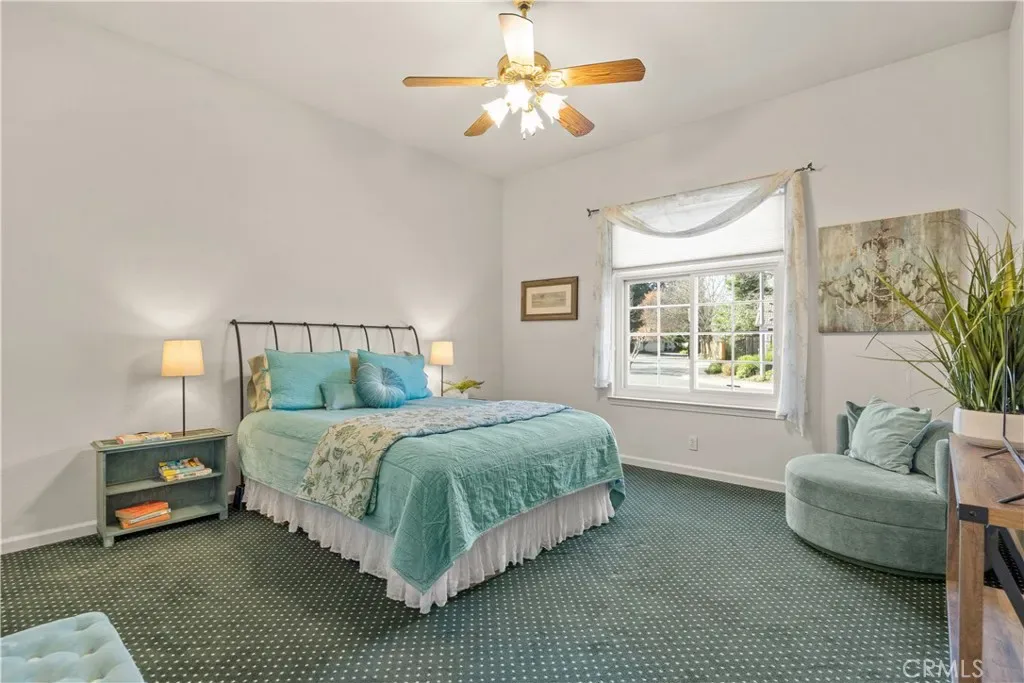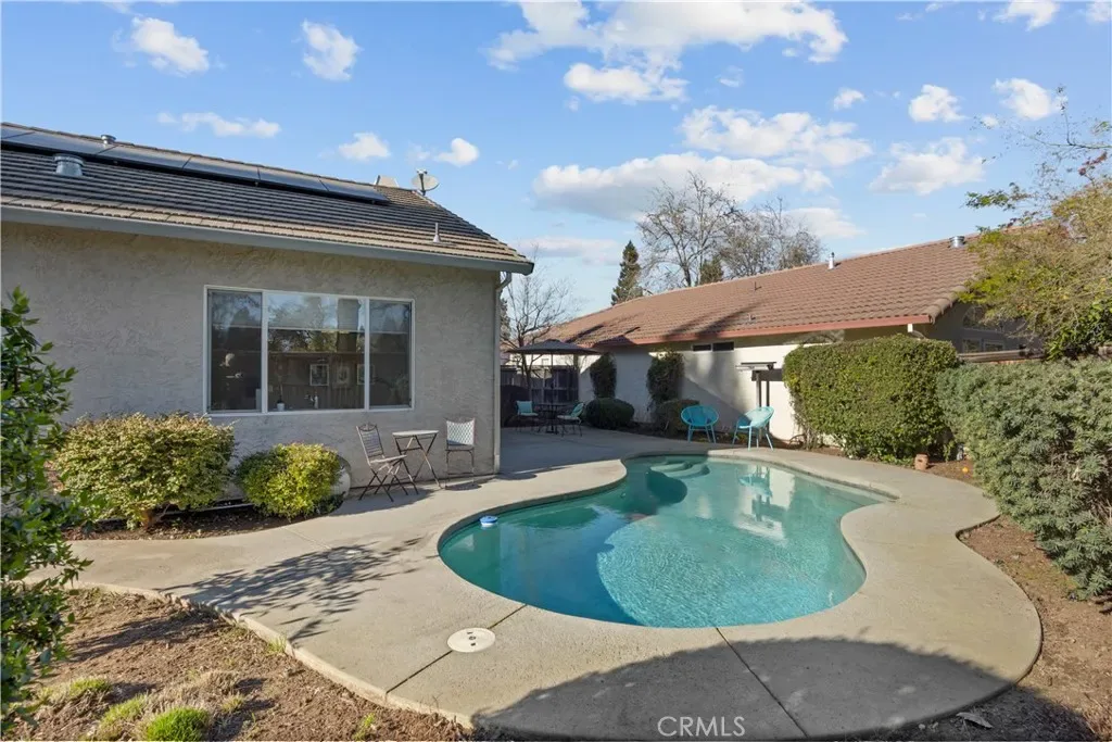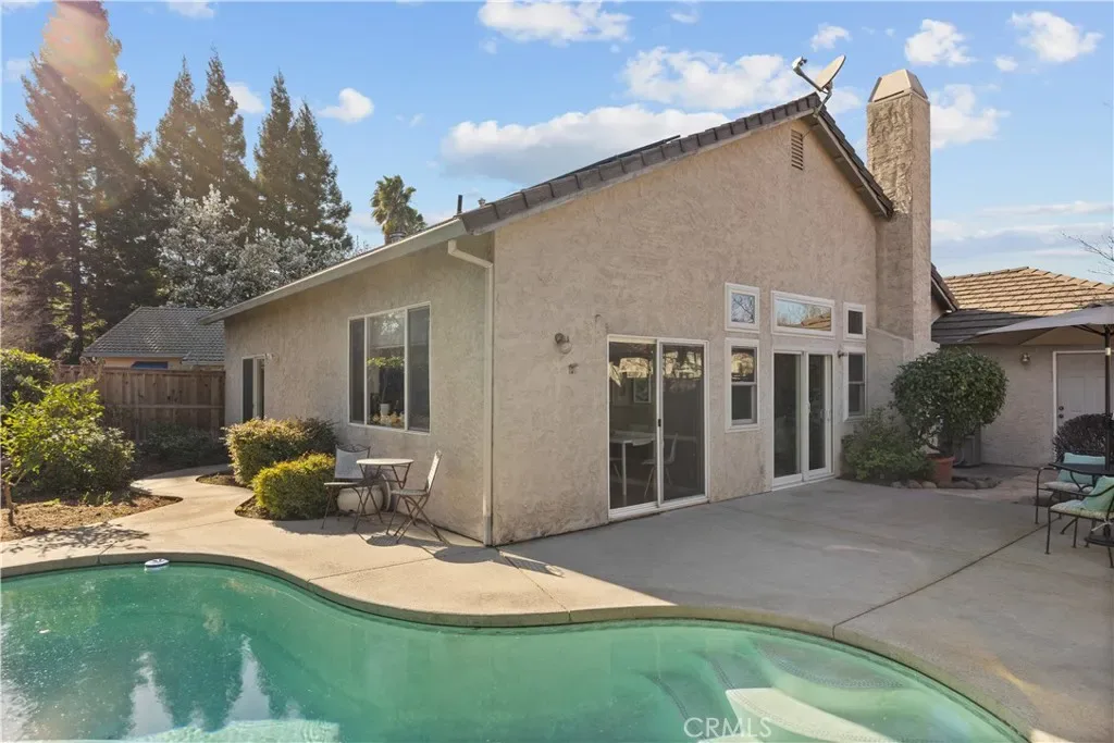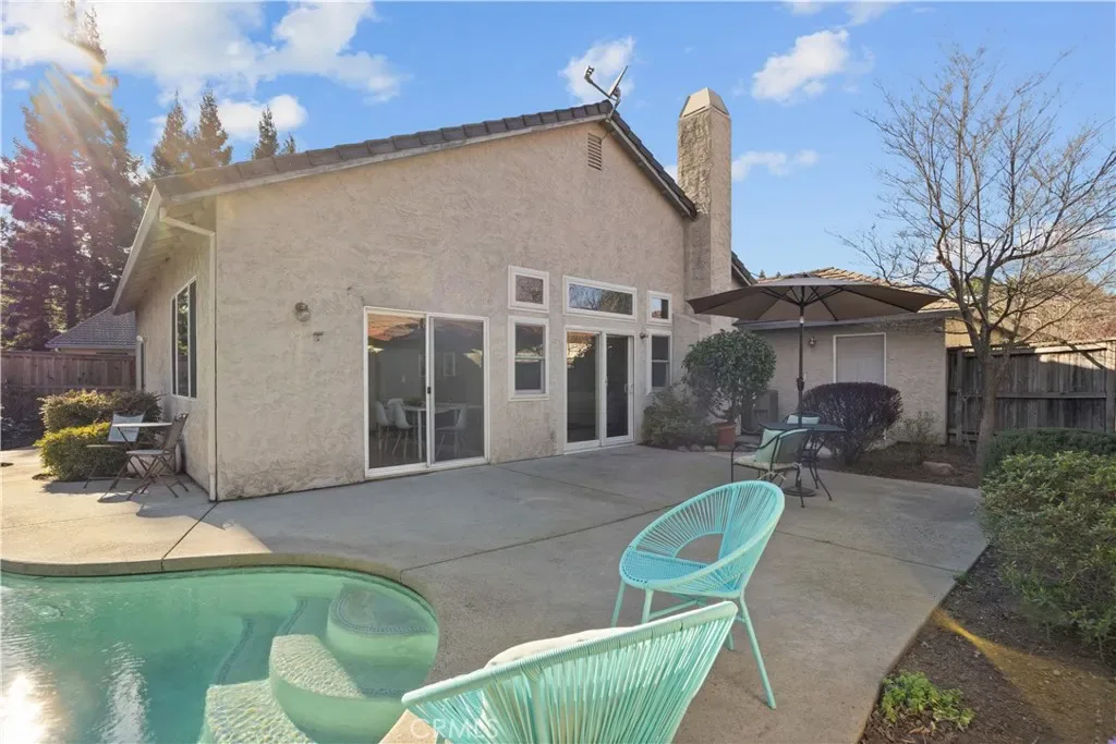 Located in the lovely Mission Ranch neighborhood, this inviting home offers space, privacy, and easy living. The well-designed split floor plan features three large bedrooms, with the primary suite set apart for added privacy and it’s own access to the backyard pool. The primary suite is a true highlight and features a remodeled bathroom with a large walk-in shower plus a huge walk-in closet providing ample storage space. The soaring ceilings throughout the home create a bright, open feel, and the spacious den near the entry is the perfect space for an office, media room, or additional living area. Outside, enjoy a nicely landscaped yard and sparkling swimming pool. The pool backs up to a public parkway so there are no nosy neighbors behind you. Additional features include a classic ceramic tile roof and a gated front courtyard that adds an additional sense of privacy and security. Front yard landscaping is maintained by the HOA making upkeep simple and convenient. Comfortable, stylish, and located in a desirable area close to many services makes this home a must see!