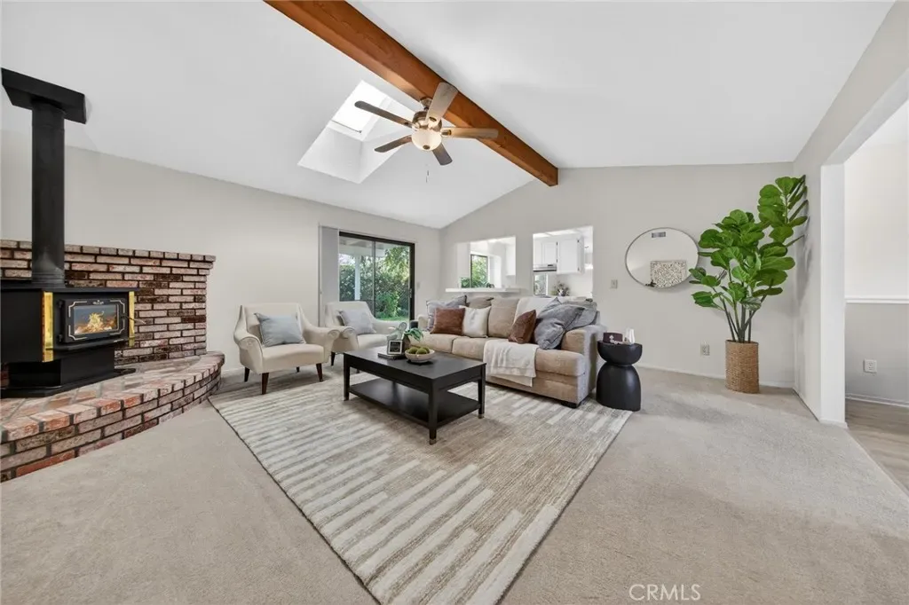 Nestled at the end of a peaceful cul-de-sac, this beautifully cared for 3-bedroom, 2-bathroom home offers the perfect blend of comfort and space for everyday living. From the moment you arrive, you’ll be impressed by the manicured landscaping, attached 2-car garage, freshly painted exterior, charming brick accents that create exceptional curb appeal. Step inside to discover softly painted walls, an abundance of natural light and a spacious formal living room that flows effortlessly into the expansive family room, creating an ideal setting for entertaining. The inviting family room is full of character and features a striking wood beam ceiling, skylight and a centrally located brick fireplace that brings warmth and charm to the space. The bright and open kitchen is sure to delight any home chef. Outfitted with crisp white cabinetry, tile countertops, convenient breakfast bar and a dining area just steps away, it offers everything you need for preparing meals and gathering with family and friends. When it’s time to unwind, escape to the spacious primary suite. This relaxing retreat offers ample room, private access to the backyard, a generous walk-in closet and an en suite bathroom complete with a large vanity area and walk-in shower. Outside, the backyard feels like your own private park. Enjoy summer barbecues beneath the covered patio, plenty of lawn for outdoor games and activities, space for a garden and mature landscaping along the fence line that provides both beauty and privacy. Located in a serene neighborhood with no through traffic, this exceptional home is one you won’t want to let pass you by.