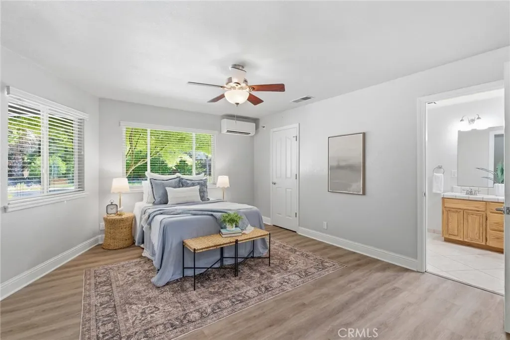 Nestled in an amazing neighborhood, this standout property offers the perfect combination of community charm and modern comfort. Designed with multigenerational living in mind, this one-of-a-kind home features two spacious primary bedrooms, each with double sinks in the en-suite bathrooms, along with two living rooms and a dedicated dining area that create the perfect balance of connection and privacy. Step outside to your own private retreat, complete with a sparkling pool, garden area, and a variety of fruit trees including avocado and table grapes, all contributing to a peaceful, park-like setting ideal for relaxing or entertaining. Inside, the home is packed with upgrades and thoughtful features. Enjoy year-round comfort with two HVAC systems, two whole house fans, and a mini split in the second primary bedroom. The finished attic, complete with heating and cooling, adds flexible living space, while owned solar enhances energy efficiency. Additional highlights include an electric stove and oven, two hot water heaters, a plumbed whole house vacuum system, and a wired camera system for added convenience and security. The property also offers a workshop and a spacious three-car garage, providing ample room for hobbies, storage, and projects. Modern touches like a Rainbird irrigation system controlled by an app further elevate everyday living. Located in a friendly, highly desirable neighborhood where the entire loop measures exactly one mile, you’ll love the sense of community. This home truly has it all! Space, versatility, upgrades, and an unbeatable setting. Don’t miss your opportunity to make it yours!