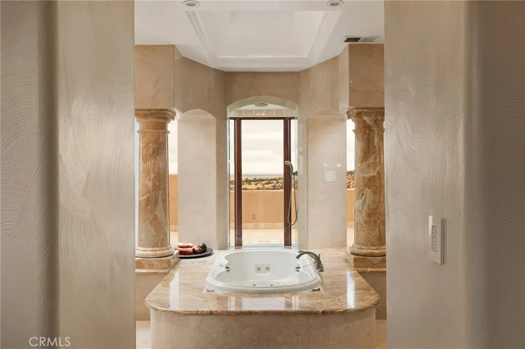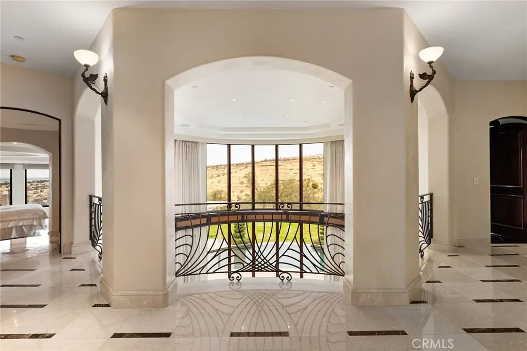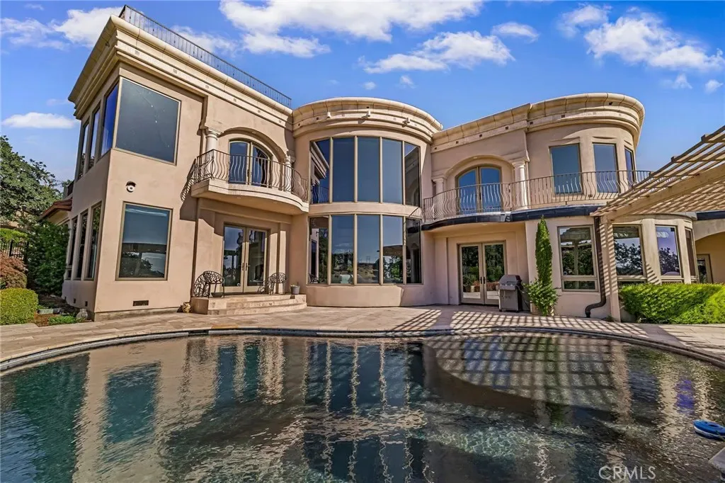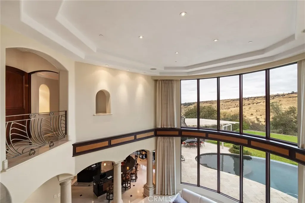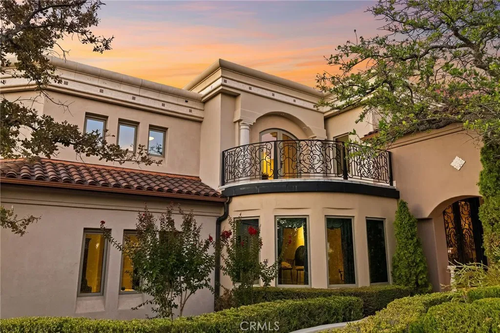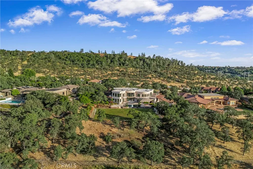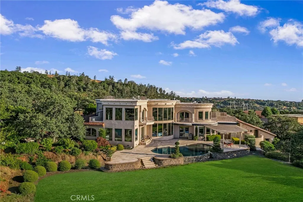 Gracefully set on 1.2 acres in the exclusive Canyon Oaks Country Club, this Mediterranean-inspired estate is a rare expression of enduring beauty and refined living. Thoughtfully envisioned by its original owners and masterfully built by renowned custom homebuilder Michael Gali, the residence captures the essence of architectural sophistication, elevated comfort, and seamless integration with its natural surroundings. Nestled along the boundary of Upper Bidwell Park, the property has direct access to the South Rim Trail, offering unobstructed entry to Chico’s most iconic landscapes. A welcoming circular driveway, gracefully created with granite pavers, winds through the property and sets the tone for a truly unforgettable arrival. An inviting storybook-style balcony, poised beside a majestic covered entrance, evokes the feeling of timeless grandeur. Inside, a dramatic foyer reveals soaring ceilings, a sweeping spiral staircase, and radiant light dancing across Italian marble floors. The Great Room features striking rotunda windows with panoramic canyon views, seamlessly blending the indoors with nature. The chef’s kitchen boasts all-Viking appliances, a double oven, and bespoke mahogany cabinetry. Four spacious bedrooms and four-and-a-half baths include a primary suite with private terrace, sunken palatial tub framed by marble columns, and dual showers offering floor-to-ceiling views-an unforgettable start or end to any day. An ambient mezzanine connects the home’s wings, while a richly appointed library features a fireplace, built-ins, and terrace access. A three-car tiled garage blends style with practicality. Modern amenities abound: a private theater, five fireplaces, radiant floor heating, Lutron drapes, smart lighting, surround sound, water softener, and owned solar ensure comfort and efficiency. Outdoors, enjoy a shimmering pool, multiple verandas, a poolside bath and designer shower. A separate steam room offers a luxurious spa-like escape, perfect for relaxing after a hike or a day on the green. Evenings are best savored from the rooftop terrace, where breathtaking canyon and sunset views stretch endlessly across the horizon. Whether enjoying intimate conversation under starlit skies or selecting a vintage bottle from the in-ground, temperature-controlled wine cellar, the experience is nothing short of magical—designed to elevate daily living into something extraordinary. A true haven, this sanctuary blends fine craftsmanship with timeless beauty.