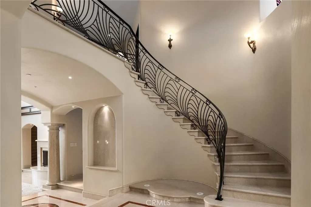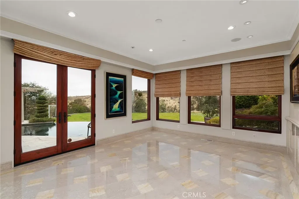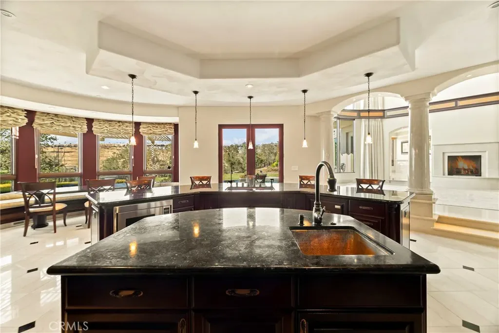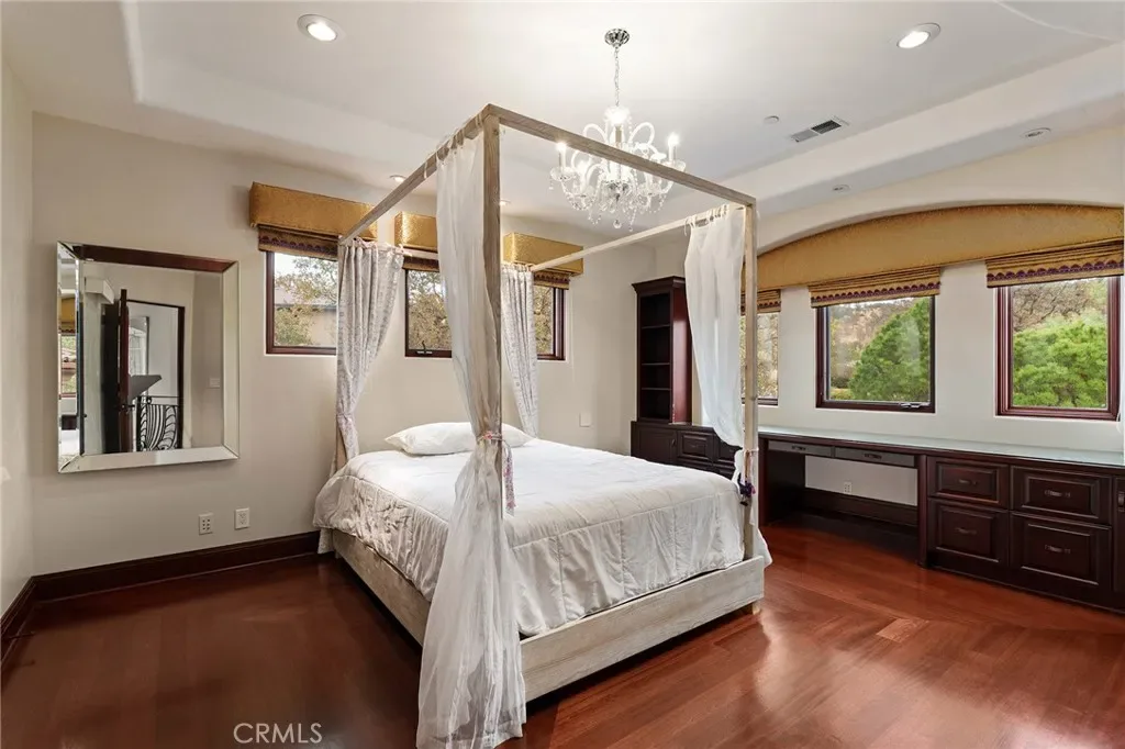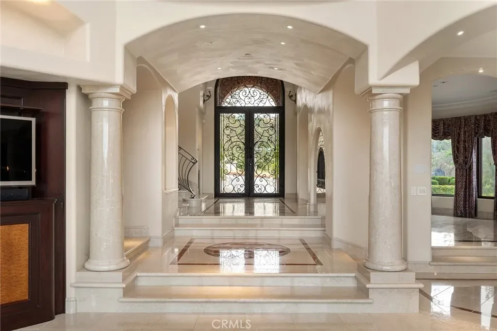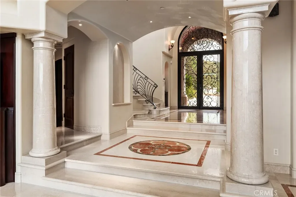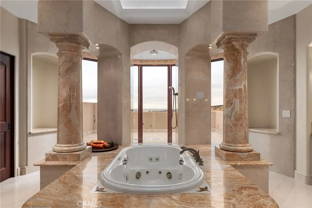 Gracefully set on 1.2 acres in the exclusive Canyon Oaks Country Club, this Mediterranean-inspired estate is a rare expression of enduring beauty and refined living. Thoughtfully envisioned by its original owners and masterfully built by renowned custom homebuilder Michael Gali, the residence captures the essence of architectural sophistication, elevated comfort, and seamless integration with its natural surroundings. Nestled along the boundary of Upper Bidwell Park, the property has direct access to the South Rim Trail, offering unobstructed entry to Chico’s most iconic landscapes. A welcoming circular driveway, gracefully created with granite pavers, winds through the property and sets the tone for a truly unforgettable arrival. An inviting storybook-style balcony, poised beside a majestic covered entrance, evokes the feeling of timeless grandeur. Inside, a dramatic foyer reveals soaring ceilings, a sweeping spiral staircase, and radiant light dancing across Italian marble floors. The Great Room features striking rotunda windows with panoramic canyon views, seamlessly blending the indoors with nature. The chef’s kitchen boasts all-Viking appliances, a double oven, and bespoke mahogany cabinetry. Four spacious bedrooms and four-and-a-half baths include a primary suite with private terrace, sunken palatial tub framed by marble columns, and dual showers offering floor-to-ceiling views-an unforgettable start or end to any day. An ambient mezzanine connects the home’s wings, while a richly appointed library features a fireplace, built-ins, and terrace access. A three-car tiled garage blends style with practicality. Modern amenities abound: a private theater, five fireplaces, radiant floor heating, Lutron drapes, smart lighting, surround sound, water softener, and owned solar ensure comfort and efficiency. Outdoors, enjoy a shimmering pool, multiple verandas, a poolside bath and designer shower. A separate steam room offers a luxurious spa-like escape, perfect for relaxing after a hike or a day on the green. Evenings are best savored from the rooftop terrace, where breathtaking canyon and sunset views stretch endlessly across the horizon. Whether enjoying intimate conversation under starlit skies or selecting a vintage bottle from the in-ground, temperature-controlled wine cellar, the experience is nothing short of magical—designed to elevate daily living into something extraordinary. A true haven, this sanctuary blends fine craftsmanship with timeless beauty.