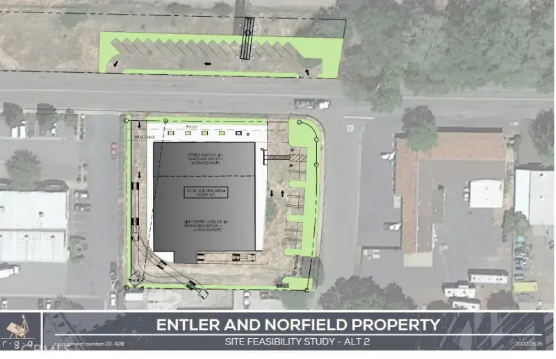 Prime Commercial Development Land with Highway Frontage – Corner Lot at Entler Ave. and Norfield with additional land running along HW 99, total of 1.84 Acres. Develop the corner for your business and utilize the highway frontage for parking, yard area or other use. Exciting path of growth opportunity. The City of Chico is extending its sewer line across the highway through the Subject Property (Easement – Should not affect use of property) There are Billboards on the highway frontage portion of the premises. Seller to retain ownership of Billboard Sign Easements and Billboard Leasehold Estates unless by separate agreement. Owner will consider a Build to Suit. Zoned LI – Light Industrial – Permitted uses in the LI zone include construction, maintenance and repair services; equipment sales and rentals; vehicle repair, service and maintenance; research and development; light manufacturing; and warehousing, wholesaling and distribution and emergency shel-ters. Limited amounts of retail, personal services, restaurants, and public/quasi-public uses are permitted to serve area workers, and ancillary retail areas are permitted for the sale of products manufactured on-site.