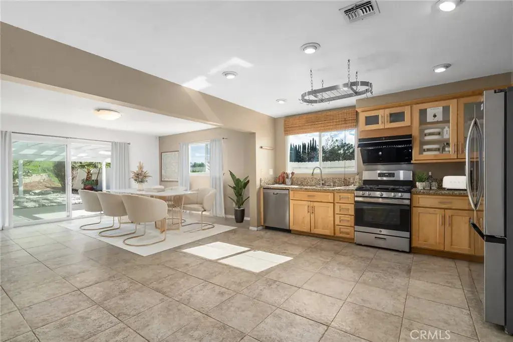 A rare opportunity to enjoy expansive indoor and outdoor living on a large Chino Hills lot. Tucked away in a quiet, well-established neighborhood, this serene single-story home offers the perfect blend of comfort, nature, and family living, with just a short walk to Strickling Park and Hickory Creek Park. Set on a generous 18,675 sq. ft. lot, the residence features 4 spacious bedrooms and 2 full bathrooms, with an open, light-filled layout designed for ease and comfort. Neutral tile flooring flows throughout the main living areas, enhancing the home’s calm and cohesive feel. The kitchen is thoughtfully appointed with granite countertops, stainless steel appliances, and generous cabinetry, opening naturally to the dining area and living room centered around a cozy fireplace, perfect for quiet evenings or relaxed gatherings. The primary suite provides a private retreat with its own bathroom and walk-in closet, while additional bedrooms offer flexibility for family, guests, or a home office. Designed entirely on one level, the home is ideal for those seeking easy living with no stairs. Step outside to enjoy a private view deck, a spacious side yard, and a generous backyard, all part of the large lot that’s perfect for outdoor dining, entertaining, gardening, or simply enjoying the surrounding greenery. The property also offers dedicated RV parking, ideal for recreational vehicles or additional storage. A two-car detached garage adds convenience and flexibility for everyday parking. Perfectly situated just minutes from both Freeway 71 and 60, this home offers quick commutes while remaining tucked away in a peaceful, family-friendly neighborhood. Located within the highly regarded Chino Hills School District, and featuring no HOA and no Mello-Roos, this home combines serene surroundings with everyday accessibility, just minutes from shopping, dining, and entertainment at The Shoppes.