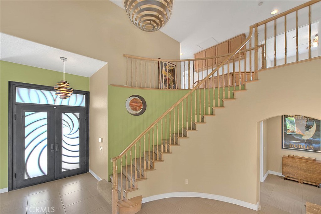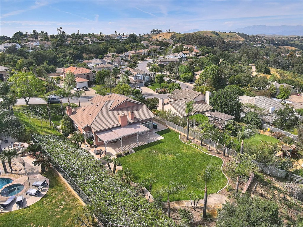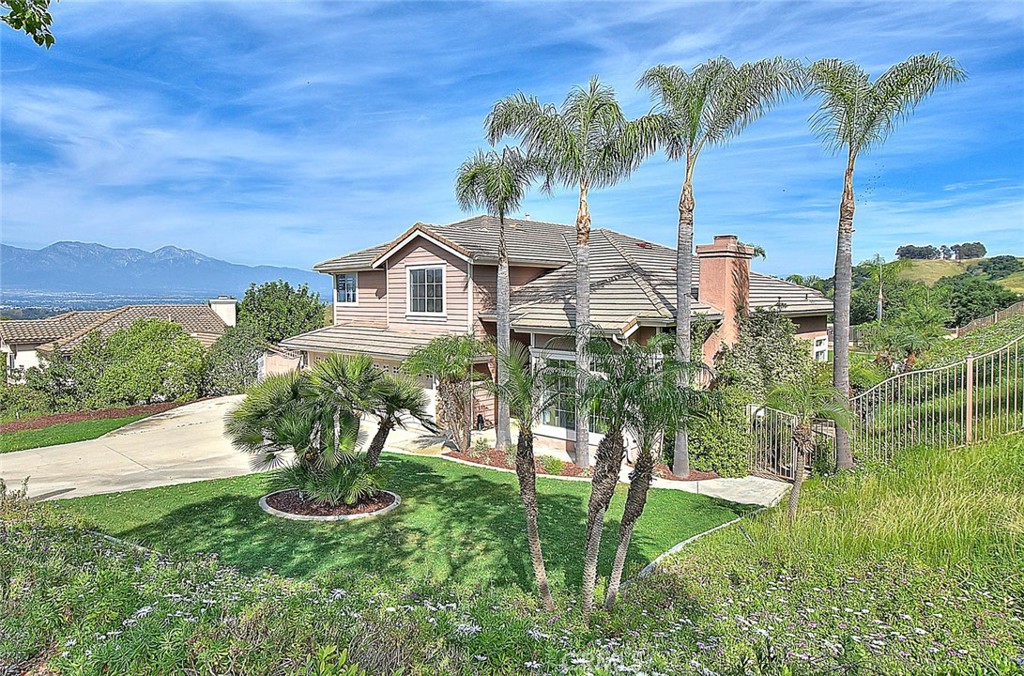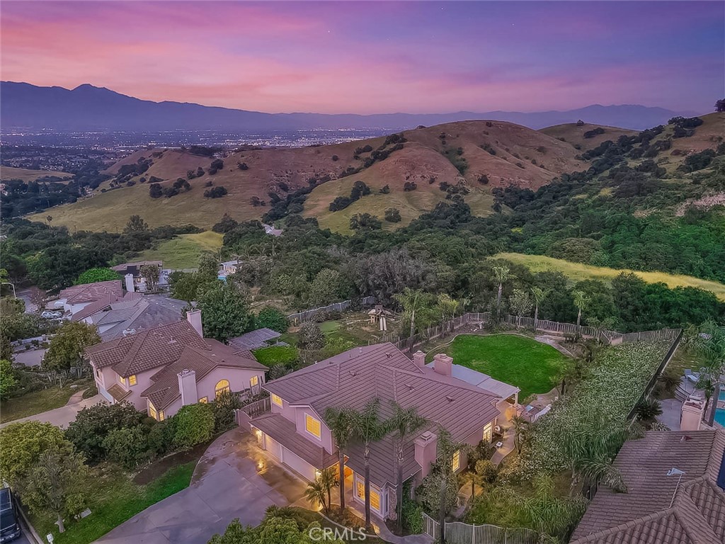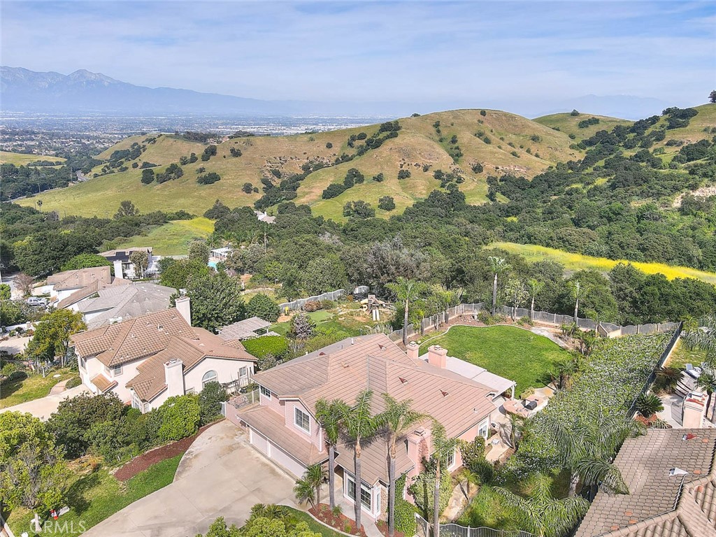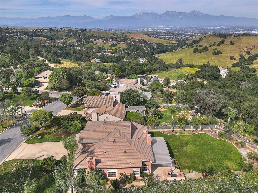Highly desirable Chino Hills home located in the beautiful “Carriage Hills” neighborhood with its dramatic rolling foothills & breathtaking views. This wonderful property is situated on a sprawling 21,204 sq ft lot (per tax roll) with majestic mountain & foothill views. A fantastic floorplan features 4 bedrooms plus a bonus room & 2 ½ bathrooms. 3 fireplaces create an inviting setting in multiple locations of the home including the formal living room, family room and primary suite. The primary bedroom is located on the first floor & the 3 guest bedrooms & bonus room are located on the second story of the home. The custom double doors make a dramatic statement as you arrive at the property. Inside boasts upgraded tile flooring that has a contemporary design. Formal living & formal dining room with high ceilings as you enter off the foyer. There is a wonderful granite topped area of cabinets within the formal dining space providing wonderful storage & counter that can be used for decorative purposes or serving needs. Remodeled kitchen is elegant & contemporary in design with sleek cabinetry finish, designer backsplash, upgraded counters, stainless appliances, recessed lighting & sizeable island with bar top dining & custom light fixture overhead as well as in the breakfast nook. The kitchen opens to the family room which features a coffee bar & shelving, high ceilings & views to the backyard. Wonderful first floor primary bedroom enjoys a tranquil setting as you enjoy the fireplace, dual closets & wonderful on-suite bathroom that has been remodeled. Unique dual vanity with new fixtures, above counter sinks, fabulous oversized walk in shower with gorgeous tile detailing! Secondary bedrooms are nicely sized & the bonus room would make a wonderful home office space or could be utilized as a 5th bedroom though it does not have a closet. There is a full guest bathroom on the upper level & a powder room on the first level. The backyard setting is fantastic! Covered patio with mountain & views of the rolling hills, incredibly dramatic & peaceful. Outdoor built-in barbecue is perfect for outdoor entertaining & meals. There is an expansive pool sized lawn area, so many outside options for this space if desired! Convenient 3 car garage with generous driveway parking as well. Chino Hills is known for its award winning, unique foothill setting, hiking & biking opportunities in the surrounding areas, and conveniently just a short drive to Orange County!