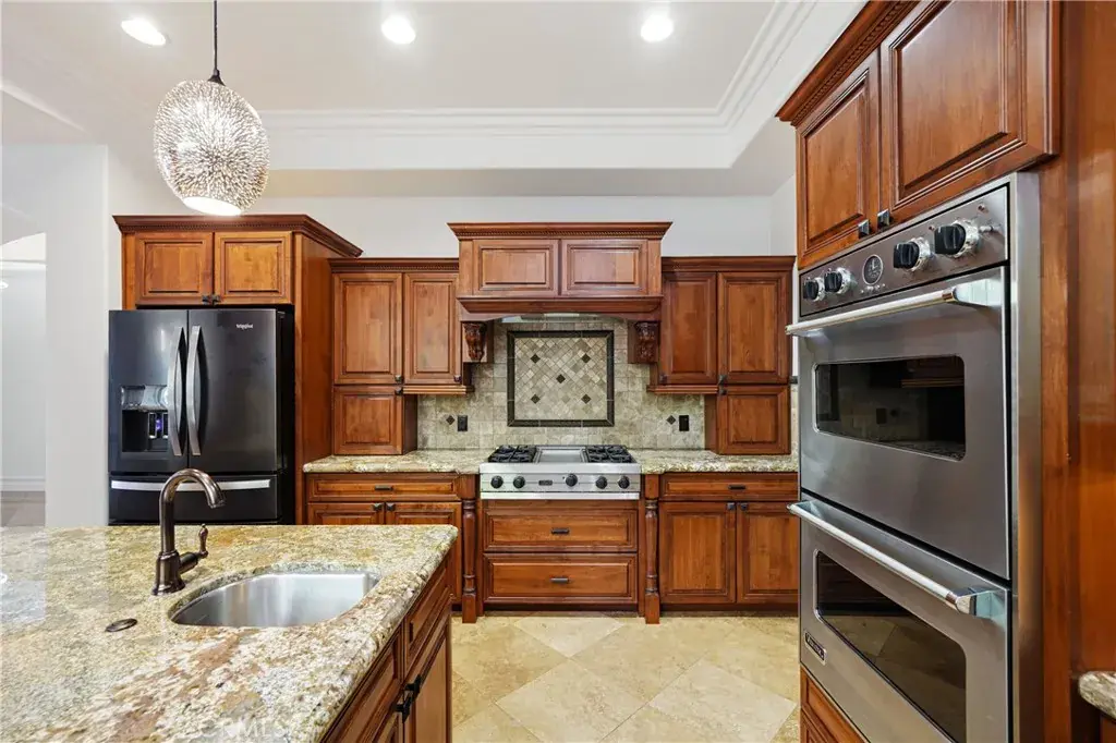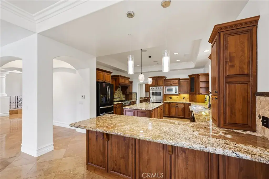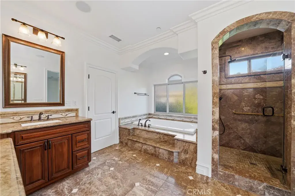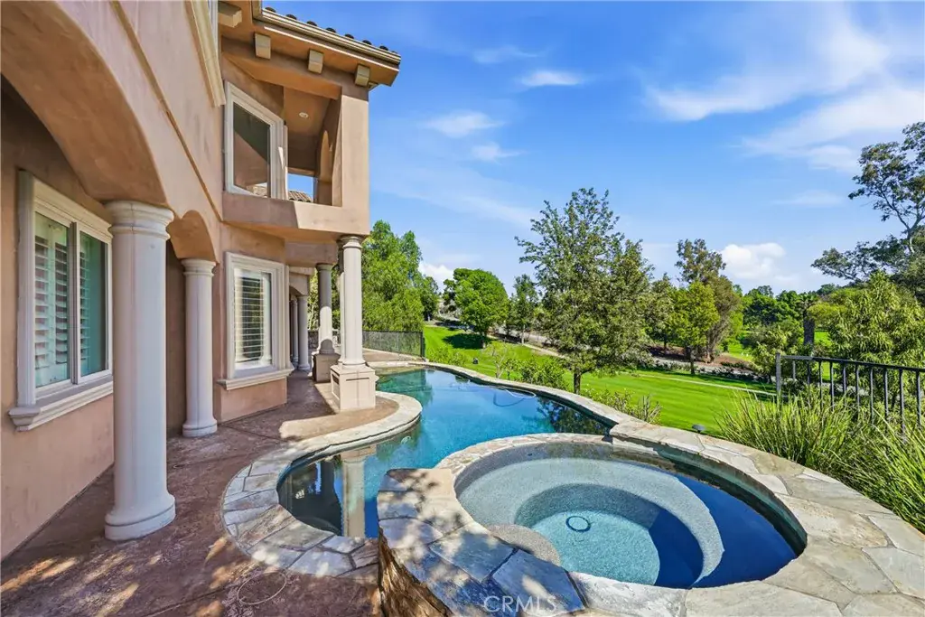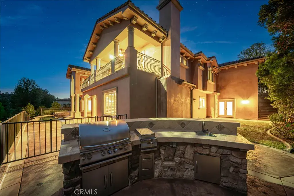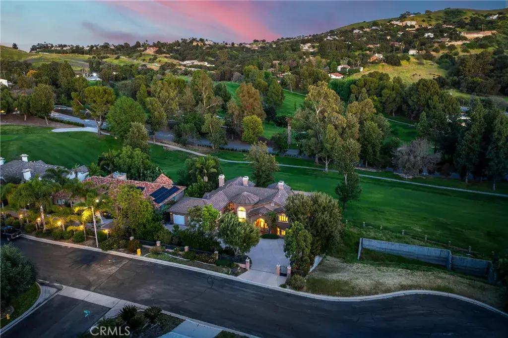 Welcome to 16127 Greens Court! A breathtaking custom estate gracefully positioned near the prestigious Western Hills Golf Course in the heart of Chino Hills. Built in 2008 with exceptional craftsmanship, this distinguished residence offers approximately 4,711 square feet of refined living space, featuring five spacious bedrooms and five-and-a-half bathrooms, all set on an expansive 16,000 square foot lot. Upon entry, you are welcomed by dramatic high ceilings and an open-concept design that exudes sophistication. Marble and hardwood flooring, granite and stone finishes, custom columns, detailed crown and base molding, and finely crafted cabinetry reflect the home’s meticulous attention to detail. Multiple French doors and two private balconies create a seamless indoor-outdoor flow while capturing picturesque golf course views. The gourmet kitchen is thoughtfully designed for both everyday living and elevated entertaining, complete with top-tier appliances, custom cabinetry, double ovens, a chef’s range, marble countertops, a generous center island, breakfast nook, walk-in pantry, and dedicated wine storage. The primary suite serves as a tranquil retreat, offering its own fireplace, sweeping golf course vistas, a jetted soaking tub, dual vanities, a spacious walk-in closet, and a separate glass-enclosed shower. Plantation shutters throughout further enhance the home’s timeless elegance. Additional features include: Private guest or mother-in-law quarters, Three custom fireplaces located in the primary suite, formal dining room, and family room, Dedicated executive office with built-in cabinetry, En-suite bathrooms in every bedroom, Professionally landscaped grounds with mature fruit trees and lush plantings, Three-car garage with built-in storage, Custom outdoor barbecue area, Heated saltwater pool and spa with jet features overlooking the golf course and so much more. This meticulously designed estate offers a rare combination of luxury, comfort, and enduring sophistication! Truly an extraordinary opportunity for those seeking an elevated lifestyle in one of Chino Hills’ most desirable settings.