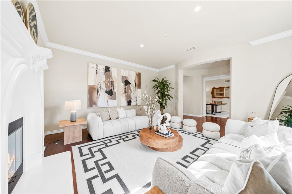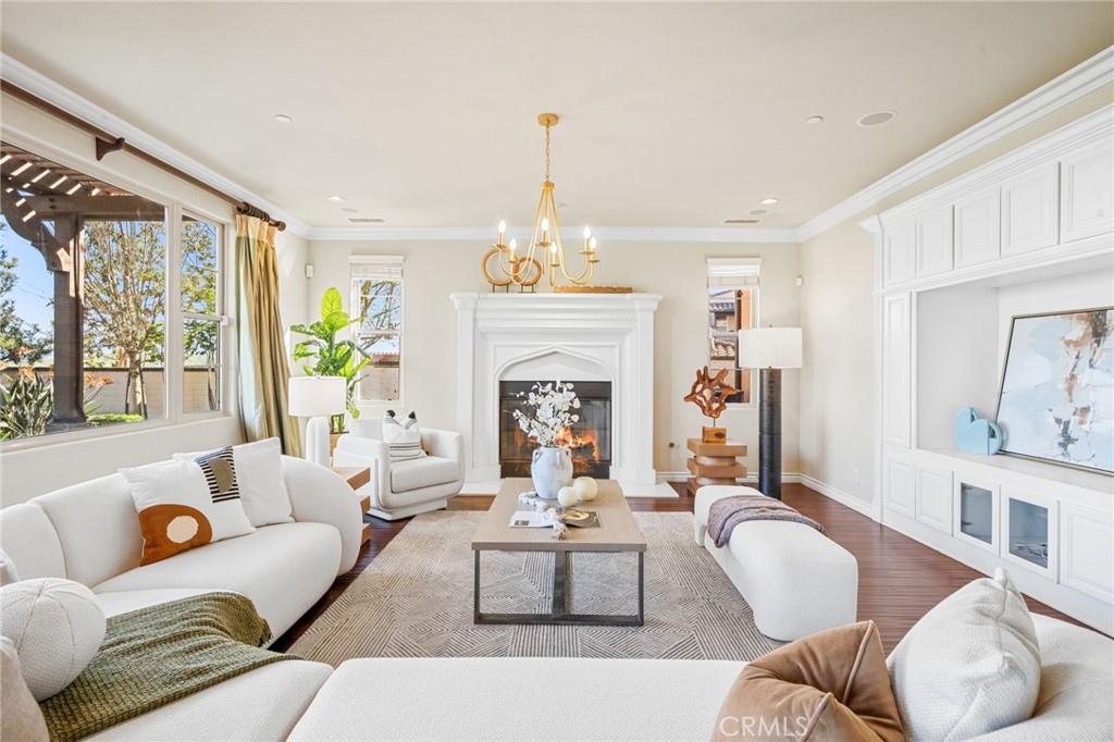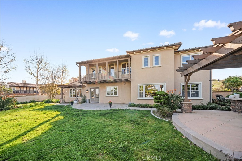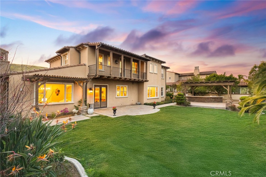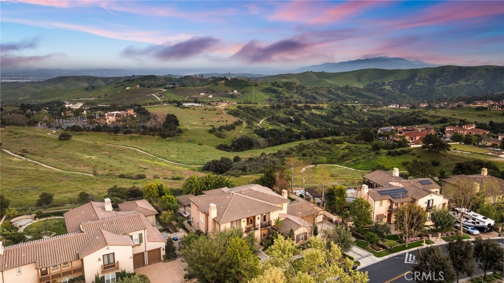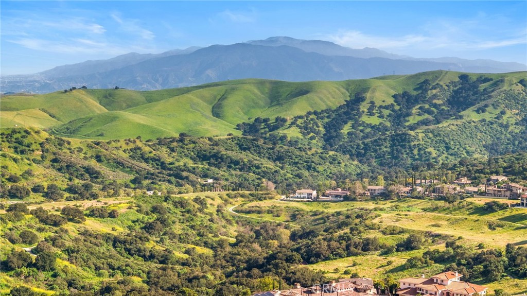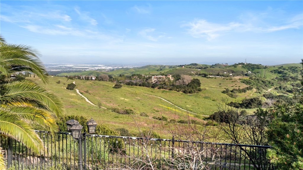 View! VIEW! VIEW! Spectacular 180-degree panoramic views of rolling hills, mountains, and city lights from this stunning luxury estate located in the prestigious gated Vellano community of Chino Hills. This impressive executive residence features 5 bedrooms and 5.5 bathrooms, including one bedroom suite downstairs, plus a private home office on the main level and a spacious upstairs entertainment/bonus room. A 4-car garage provides ample parking and storage. The home offers beautiful curb appeal with professionally landscaped grounds and a charming front courtyard fountain. Inside, the residence showcases an open floor plan with elegant wood flooring, soaring ceilings, and abundant natural light. The formal living room features a cozy fireplace, while the formal dining room boasts a dramatic two-story cathedral ceiling, creating an elegant space for entertaining. The gourmet chef’s kitchen is appointed with full slab granite countertops, a large center island with breakfast bar, white cabinetry, and premium stainless-steel appliances, including a Subzero built-in refrigerator, built-in microwave, double ovens, and a 6-burner cooktop with grill and professional hood. The sunny breakfast nook opens seamlessly to the spacious family room with fireplace and built-in entertainment center. Upstairs, all bedrooms enjoy beautiful view vistas. The luxurious primary suite features a private balcony overlooking the panoramic scenery. The spa-inspired primary bathroom offers dual vanities, a separate soaking tub, and a walk-in shower. Additional upgrades include custom window coverings, crown moldings, recessed lighting, designer chandeliers, ceiling fans, and custom two-tone paint. The professionally landscaped backyard is designed for outdoor entertaining with a built-in BBQ island, patio deck, and breathtaking panoramic views. Located in the highly sought-after Vellano gated community, offering privacy, prestige, and one of the best view locations in Chino Hills.