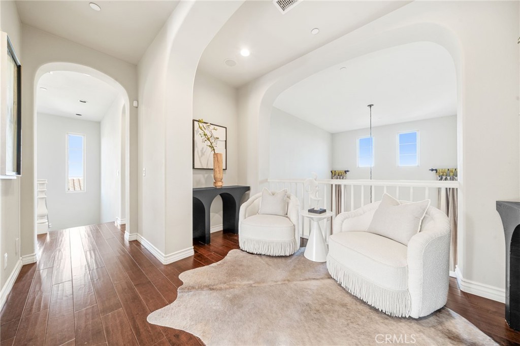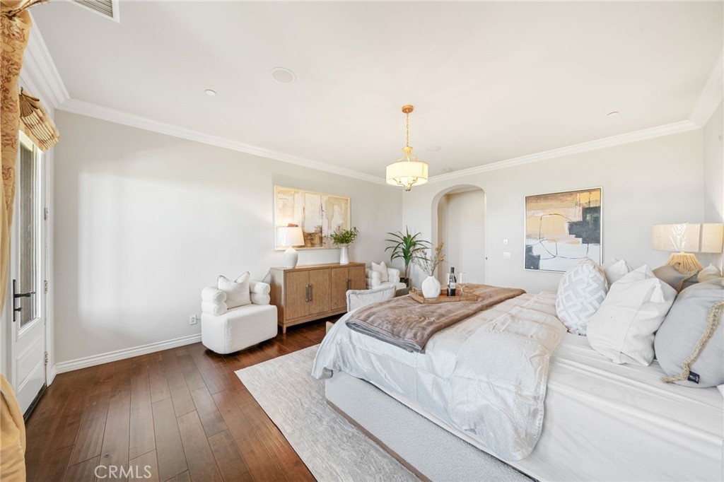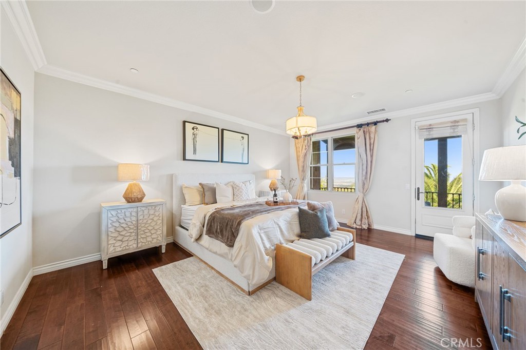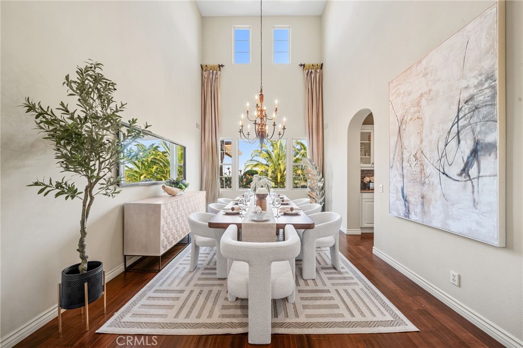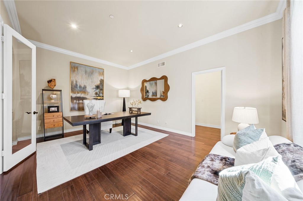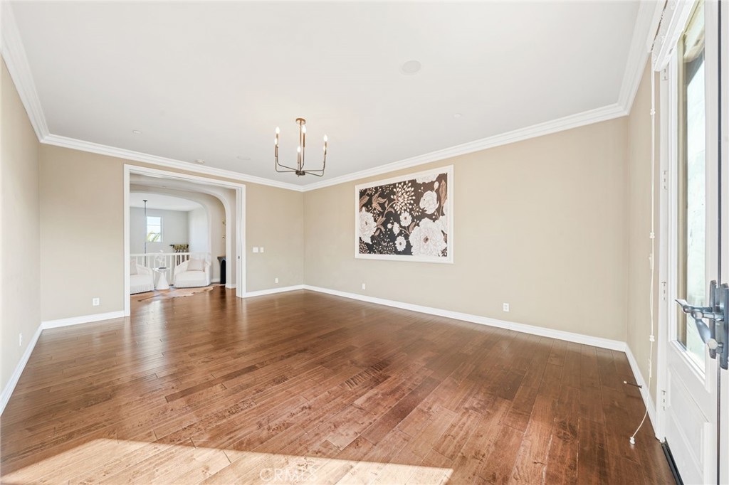 View! VIEW! VIEW! Spectacular 180-degree panoramic views of rolling hills, mountains, and city lights from this stunning luxury estate located in the prestigious gated Vellano community of Chino Hills. This impressive executive residence features 5 bedrooms and 5.5 bathrooms, including one bedroom suite downstairs, plus a private home office on the main level and a spacious upstairs entertainment/bonus room. A 4-car garage provides ample parking and storage. The home offers beautiful curb appeal with professionally landscaped grounds and a charming front courtyard fountain. Inside, the residence showcases an open floor plan with elegant wood flooring, soaring ceilings, and abundant natural light. The formal living room features a cozy fireplace, while the formal dining room boasts a dramatic two-story cathedral ceiling, creating an elegant space for entertaining. The gourmet chef’s kitchen is appointed with full slab granite countertops, a large center island with breakfast bar, white cabinetry, and premium stainless-steel appliances, including a Subzero built-in refrigerator, built-in microwave, double ovens, and a 6-burner cooktop with grill and professional hood. The sunny breakfast nook opens seamlessly to the spacious family room with fireplace and built-in entertainment center. Upstairs, all bedrooms enjoy beautiful view vistas. The luxurious primary suite features a private balcony overlooking the panoramic scenery. The spa-inspired primary bathroom offers dual vanities, a separate soaking tub, and a walk-in shower. Additional upgrades include custom window coverings, crown moldings, recessed lighting, designer chandeliers, ceiling fans, and custom two-tone paint. The professionally landscaped backyard is designed for outdoor entertaining with a built-in BBQ island, patio deck, and breathtaking panoramic views. Located in the highly sought-after Vellano gated community, offering privacy, prestige, and one of the best view locations in Chino Hills.
