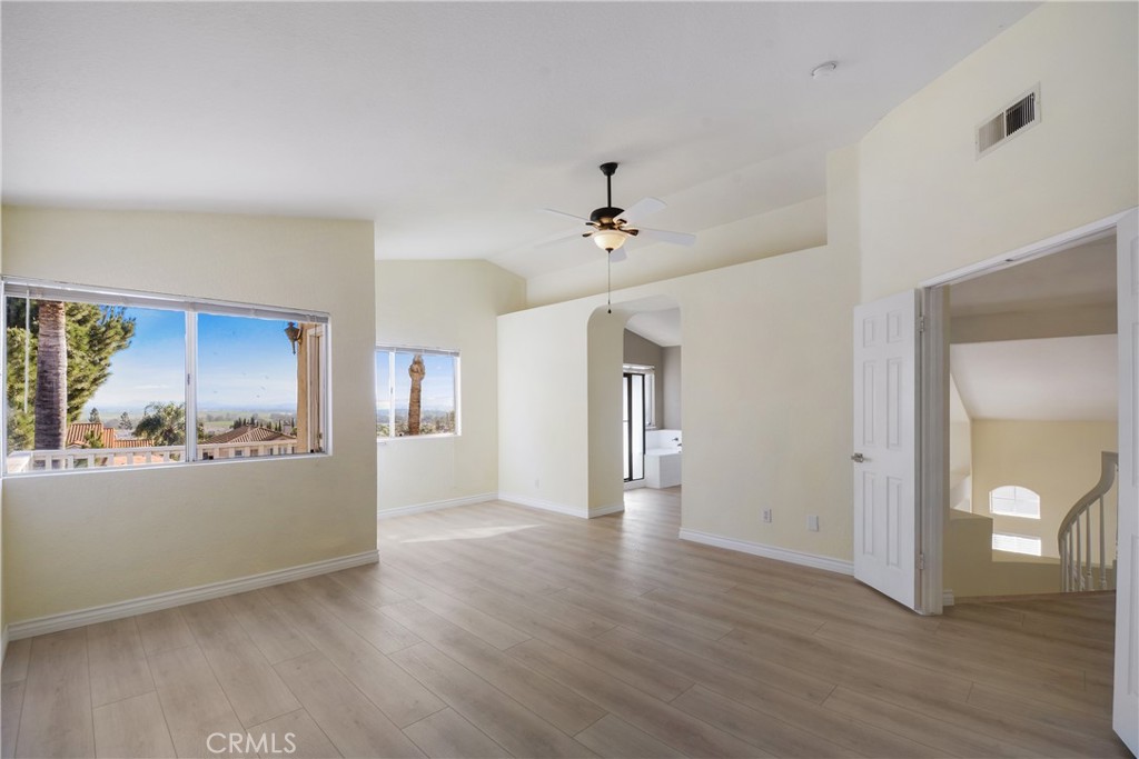 WELCOME HOME! Newly remodeled 5bd/3 ba single family residence located in a prime area of Butterfield Ranch with CITY LIGHTS AND MOUNTAIN VIEWS! Terrific curb appeal with gated courtyard entrance, double doors, spiral staircase entrance, spacious living / dining room combo with walls of glass and cathedral ceilings, gourmet kitchen w/ center island and ample cabinet space, every day dining area, family room with fireplace. ONE BEDROOM/BATHROOM DOWNSTAIRS, laundry room. Master en-suite with spacious bathroom separate shower/tub and huge walk in closet space. PRIVATE BALCONY WITH CITY LIGHTS VIEW. High ceilings. All bedrooms offer ample living/closet space PLUS HUGE BONUS ROOM (can be used as 5th bedroom). Beautiful hardwood-like flooring thru out, custom lighting and ceiling fans. Direct access to three car garage. Lush landscaping and low maintenance backyard./ entertainment area. Located within an excellent Chino Valley School district with Butterfield Ranch Elementary school within walking distance. No HOA or Mello Roos. No need to preview! Immaculate!