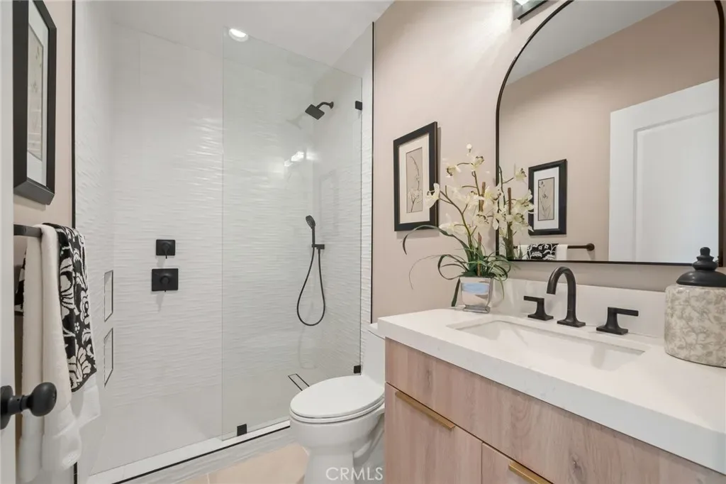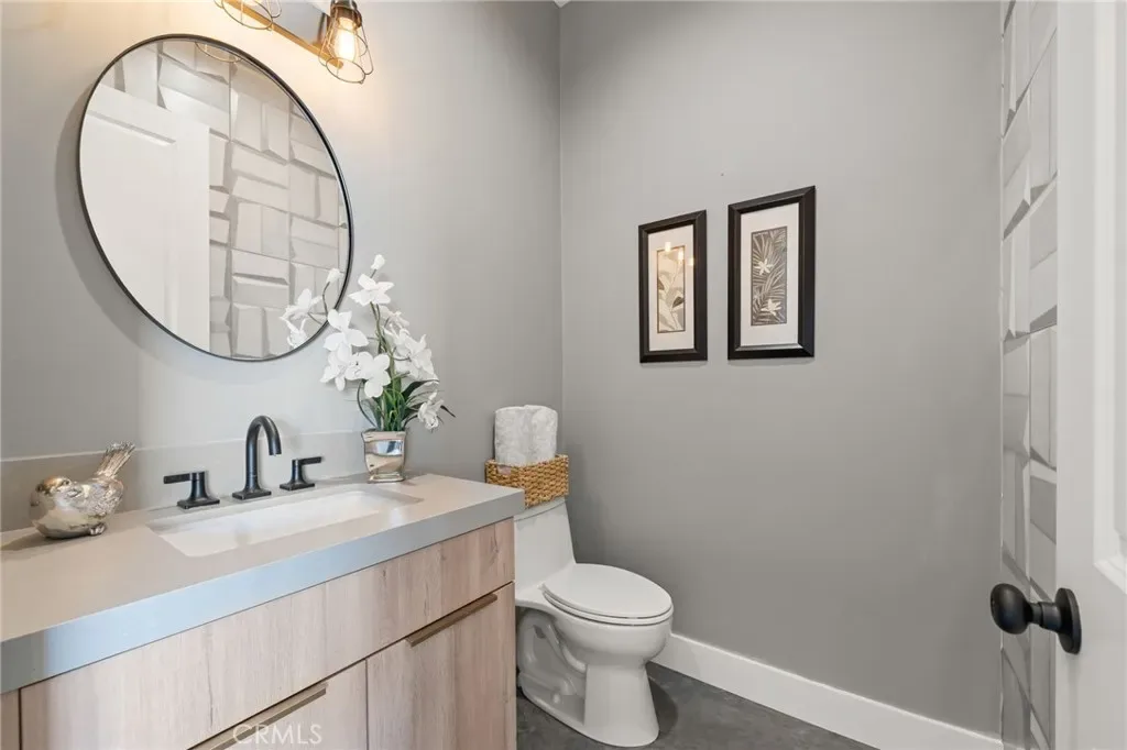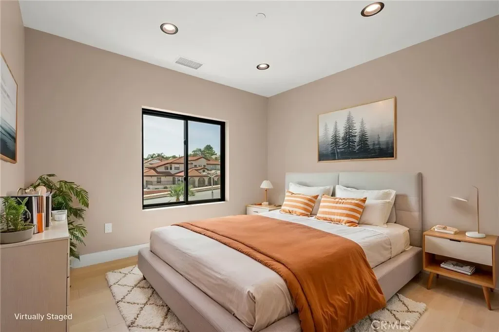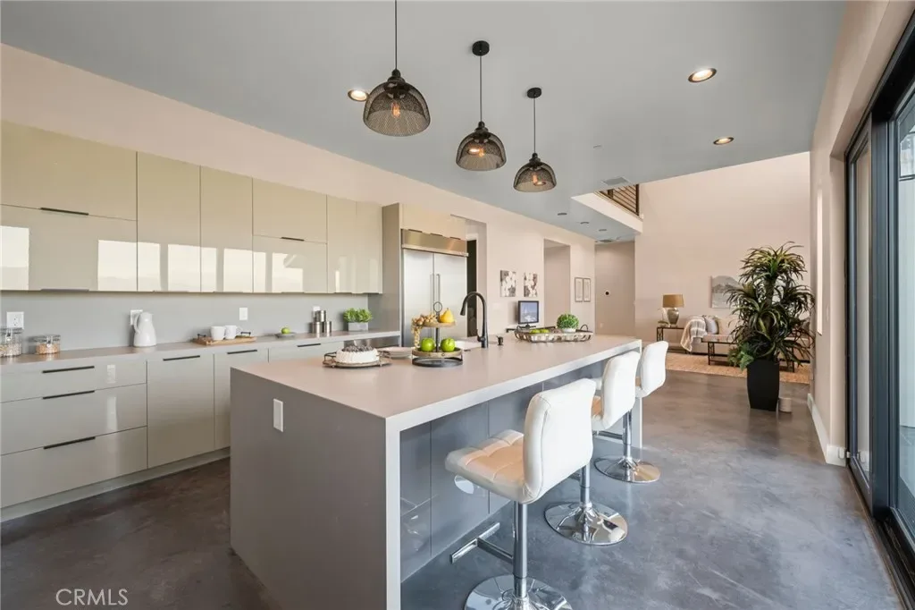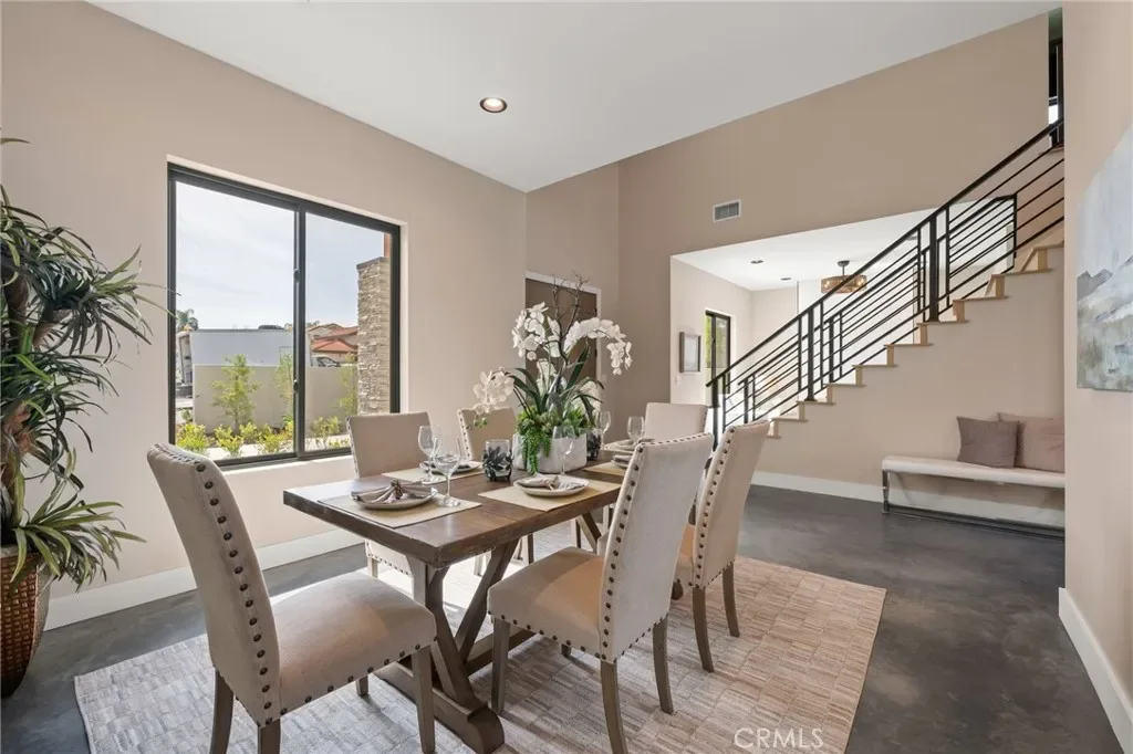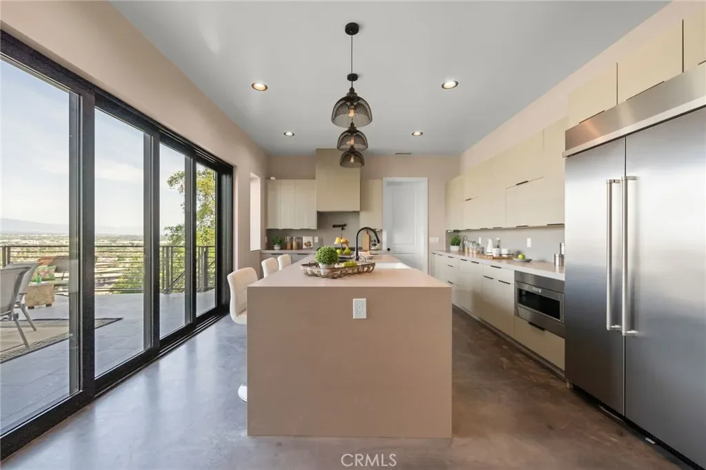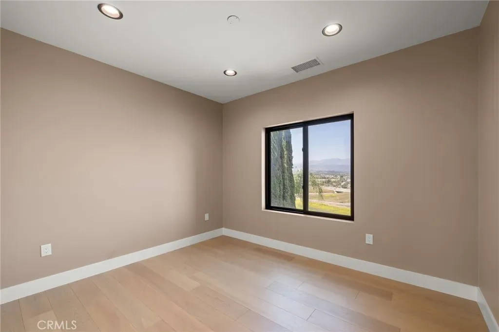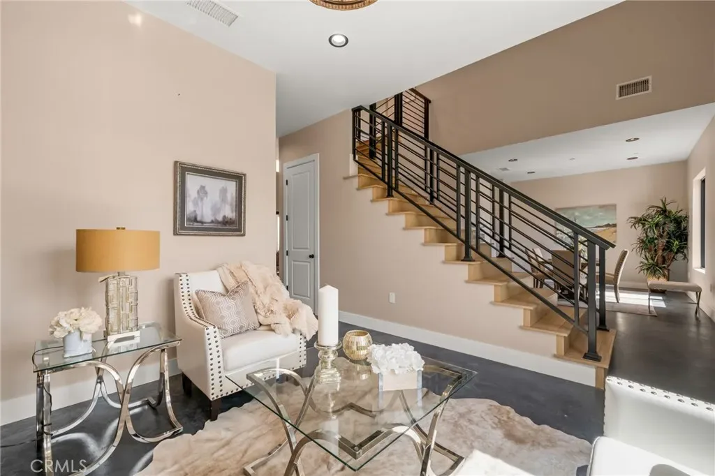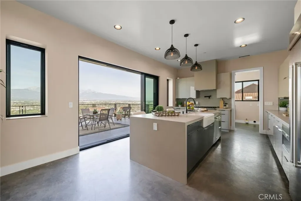 The main level includes a desirable en-suite bedroom, ideal for guests or extended family. At the heart of the home, the chef’s kitchen showcases sleek modern cabinetry, a 6-burner range, generous prep space, and a clean contemporary aesthetic that opens to the dining and living areas. The first floor features designer-finished concrete floors, adding a bold modern touch and durable style. Upstairs, the luxurious primary suite captures spectacular views and offers a walk-in closet and spa-inspired bath with beautiful tile finishes, dual vanities, soaking tub, and separate shower. Additional upstairs bedrooms are well-sized and thoughtfully arranged, including another en-suite and two bedrooms connected by a shared bath. Architectural highlights include a modern staircase with steel framing and wood accents, a bridge-style upper landing overlooking the great room, designer tilework throughout, and selected finishes that give the home a polished, upscale feel. The finished approximately 650 sq. ft. two-car garage offers excellent utility, while the oversized driveway provides abundant parking. Built for hillside conditions with substantial structural support, including caissons, this home combines beauty with peace of mind. Additional features include paid solar, dual HVAC condensers, an oversized water heater, quality insulation, and a private front courtyard entry. Conveniently located near major freeways, shopping, dining, parks, and Chino Hills State Park, this is a rare opportunity to own a brand-new custom home with commanding views in one of Chino Hills’ most desirable hillside settings.