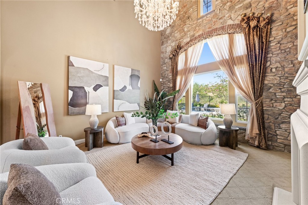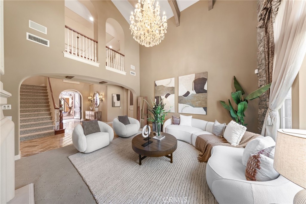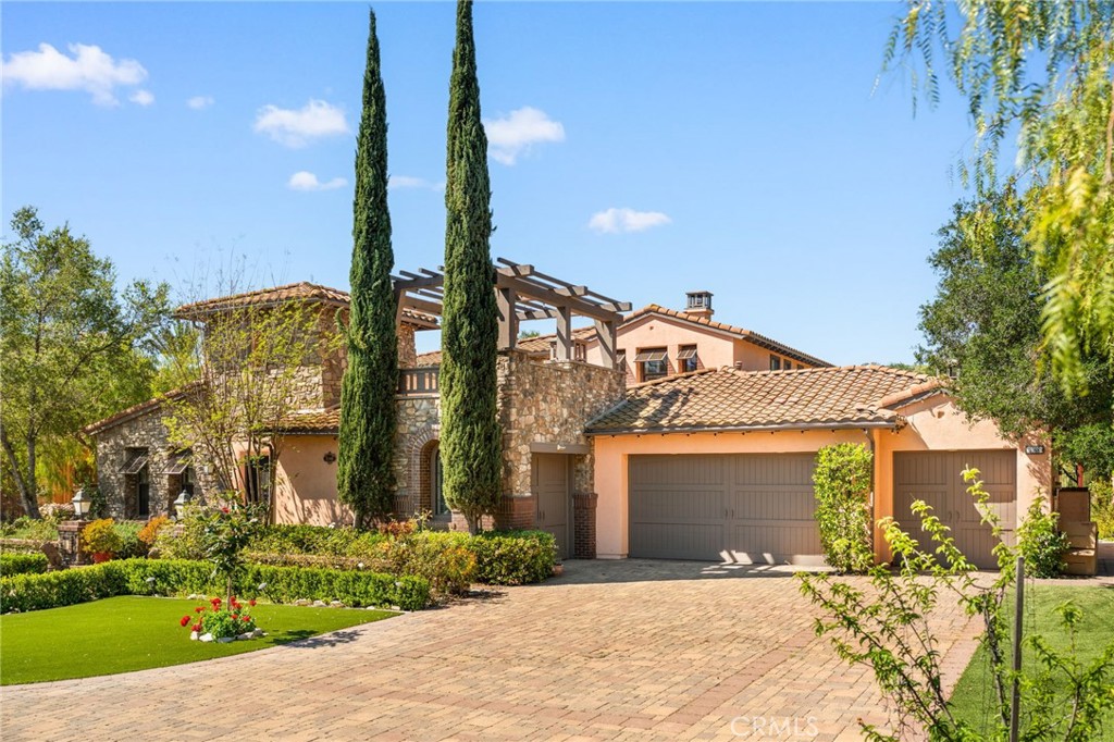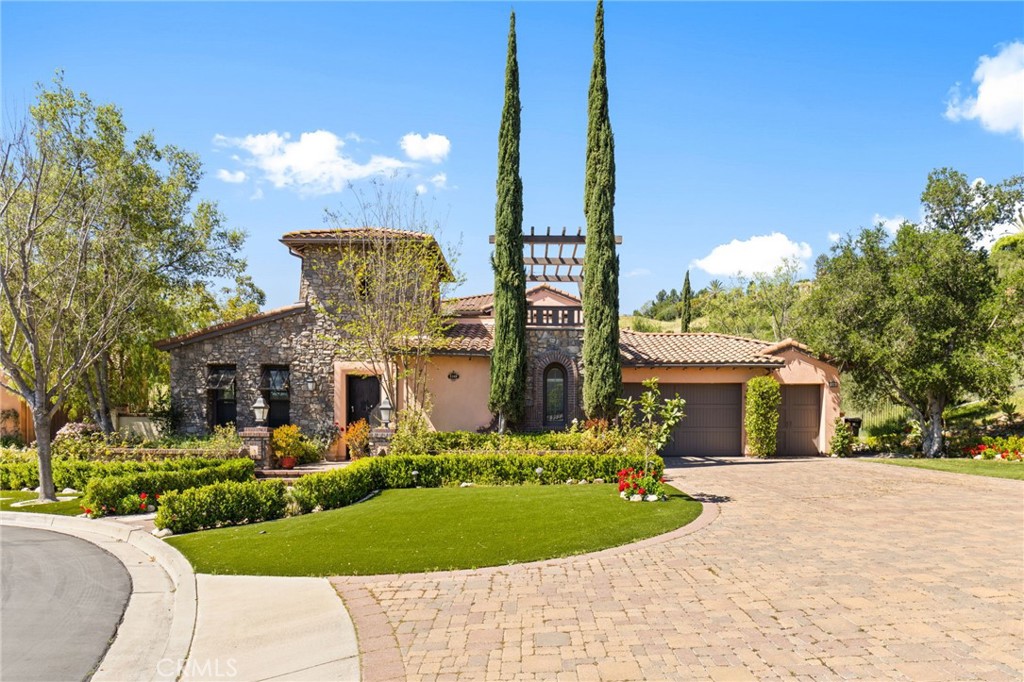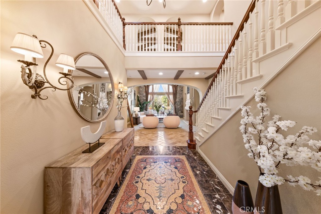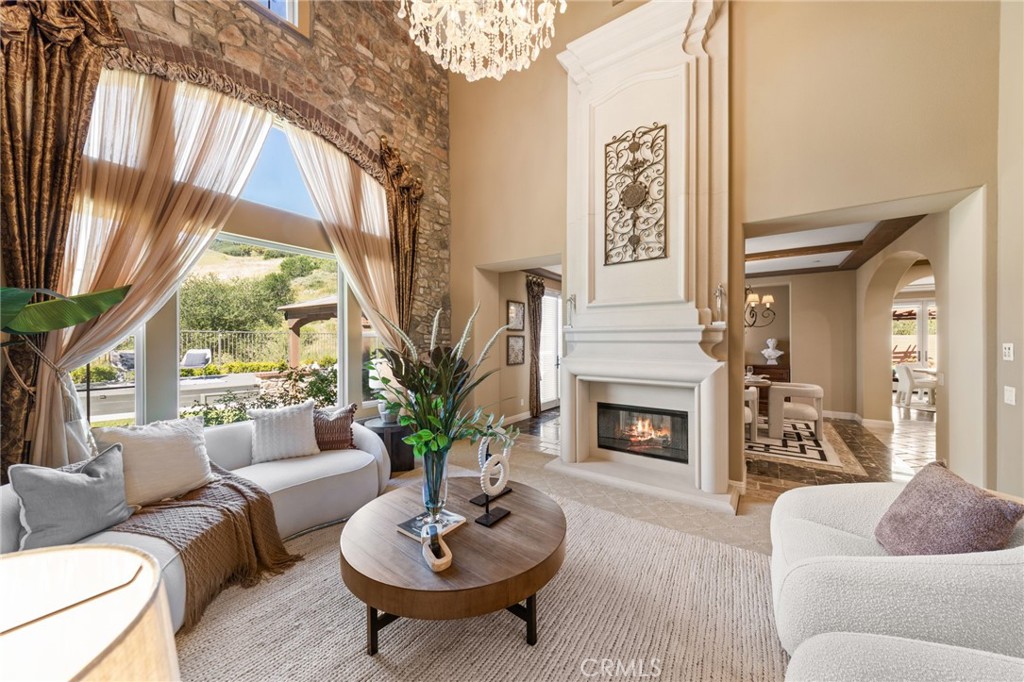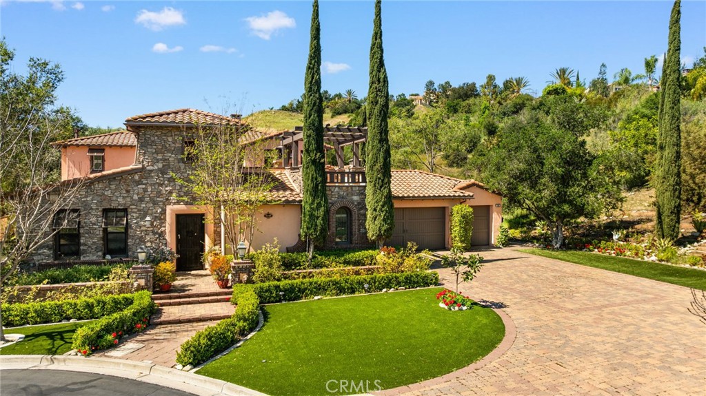 Located in the prestigious 24-hour guard-gated Vellano community of Chino Hills, this exceptional Tuscan-style estate offers 5,432 sqft of living space on an oversized 24,025 sqft lot, combining privacy, elegance, and functional luxury. A private front courtyard welcomes you into the property, featuring a detached casita—ideal for guests, multi-generational living, or a private entertainment space. Inside, the home opens to a grand living area with soaring ceilings and a beautifully designed fireplace, creating an impressive and airy atmosphere. Natural light fills the space, enhancing the home’s open and refined layout. The main level includes a spacious private office with built-in bookshelves and with direct courtyard access—perfect for working from home. The gourmet kitchen is designed for both everyday living and entertaining, featuring dual center islands, premium granite countertops, and stainless-steel appliances, including KitchenAid built-in refrigerator, 6-burner cooktop with griddle, dual ovens, built-in microwave, dual dishwashers. The kitchen flows into a generous family room with direct access to the backyard and views of the rolling hills beyond. The property has second wok kitchen, ideal design for daily cooking. The family room with built-in media center and fireplace. The formal dining room with custom wood beams and custom chandelier. The primary suite is conveniently located on the first floor, offering a retreat area, dual walk-in closets, and direct access to the backyard for seamless indoor-outdoor living. Primary bathroom with large shower, soak bathtub, dual sinks. Upstairs, three well-appointed en-suite bedrooms are positioned along a wide hallway, each offering its own private bathroom for comfort and privacy. A lot of notable features, including marble flooring, custom two-tone paint, premium wallpaper, custom window coverings, crown moldings, large laundry room with sink. The backyard is expansive and thoughtfully designed, offering exceptional privacy. Enjoy outdoor living with a built-in BBQ, covered pavilion, and open space to relax or entertain, all set against scenic hillside views. A long private driveway leads to an additional flat area, providing endless possibilities for future expansion, a sport court, or custom outdoor enhancements. As a former model home, the property showcases quality finishes and thoughtful design throughout.