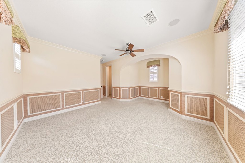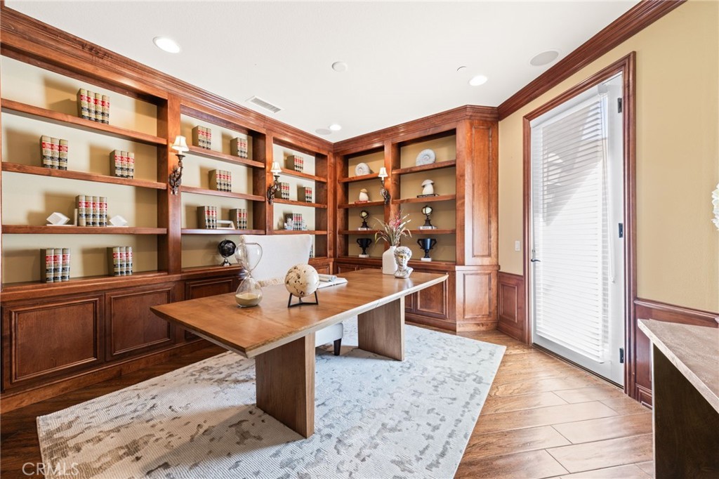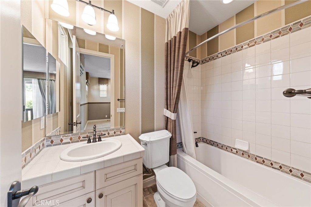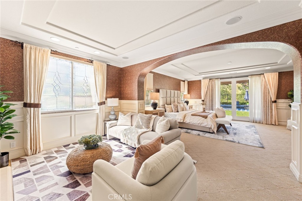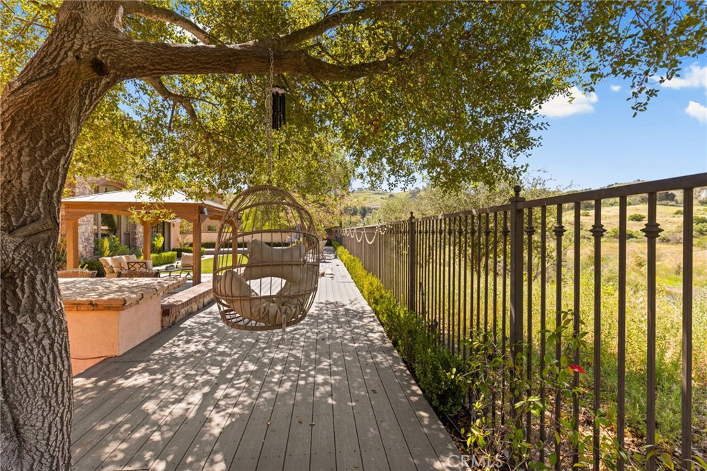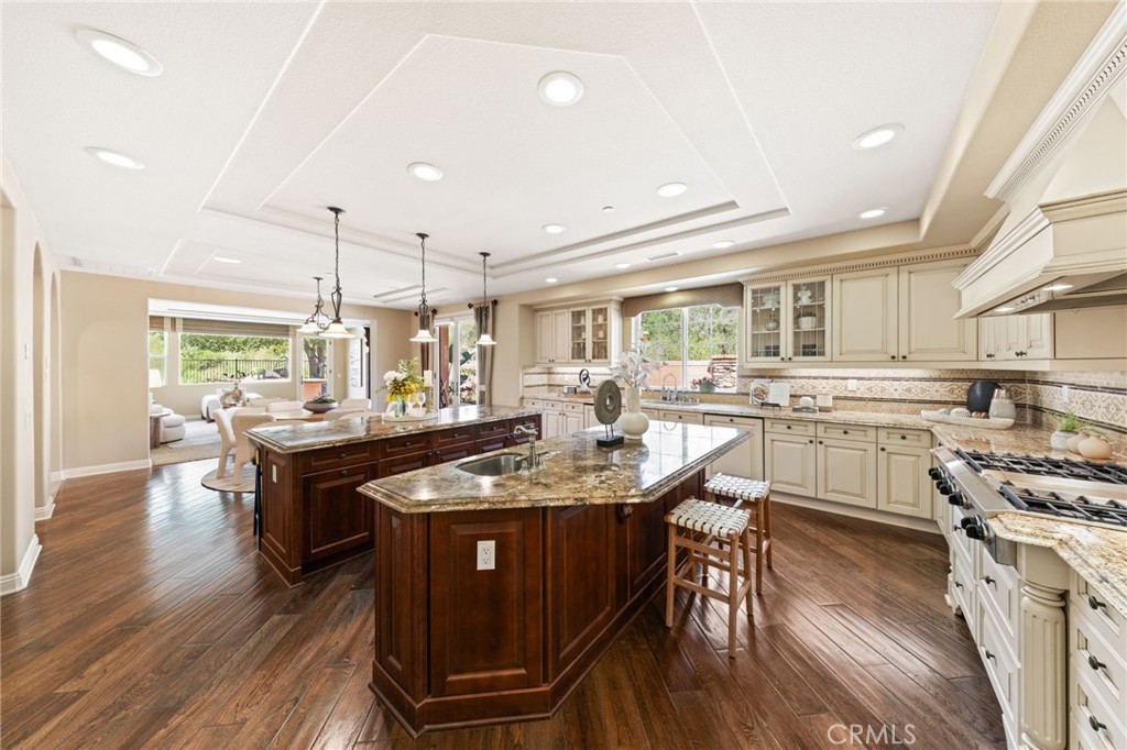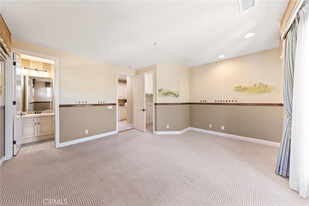 Located in the prestigious 24-hour guard-gated Vellano community of Chino Hills, this exceptional Tuscan-style estate offers 5,432 sqft of living space on an oversized 24,025 sqft lot, combining privacy, elegance, and functional luxury. A private front courtyard welcomes you into the property, featuring a detached casita—ideal for guests, multi-generational living, or a private entertainment space. Inside, the home opens to a grand living area with soaring ceilings and a beautifully designed fireplace, creating an impressive and airy atmosphere. Natural light fills the space, enhancing the home’s open and refined layout. The main level includes a spacious private office with built-in bookshelves and with direct courtyard access—perfect for working from home. The gourmet kitchen is designed for both everyday living and entertaining, featuring dual center islands, premium granite countertops, and stainless-steel appliances, including KitchenAid built-in refrigerator, 6-burner cooktop with griddle, dual ovens, built-in microwave, dual dishwashers. The kitchen flows into a generous family room with direct access to the backyard and views of the rolling hills beyond. The property has second wok kitchen, ideal design for daily cooking. The family room with built-in media center and fireplace. The formal dining room with custom wood beams and custom chandelier. The primary suite is conveniently located on the first floor, offering a retreat area, dual walk-in closets, and direct access to the backyard for seamless indoor-outdoor living. Primary bathroom with large shower, soak bathtub, dual sinks. Upstairs, three well-appointed en-suite bedrooms are positioned along a wide hallway, each offering its own private bathroom for comfort and privacy. A lot of notable features, including marble flooring, custom two-tone paint, premium wallpaper, custom window coverings, crown moldings, large laundry room with sink. The backyard is expansive and thoughtfully designed, offering exceptional privacy. Enjoy outdoor living with a built-in BBQ, covered pavilion, and open space to relax or entertain, all set against scenic hillside views. A long private driveway leads to an additional flat area, providing endless possibilities for future expansion, a sport court, or custom outdoor enhancements. As a former model home, the property showcases quality finishes and thoughtful design throughout.
