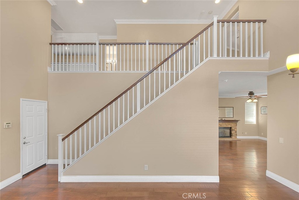Nestled in a highly desired Chino Hills neighborhood, this inviting two-story home is move-in ready. Upon entering, you’ll appreciate the spacious formal living with vaulted ceilings and dining room—an ideal setting for entertaining family and friends. The dine-in kitchen offers ample cabinet and counter space, highlighted by granite countertops and new stainless steel appliances. The cozy family room features a stone fireplace and a built-in entertainment niche pre-wired for surround sound, creating a warm and welcoming place to relax. The main level also includes an unpermitted 5th bedroom and a remodeled full bathroom. Upstairs, the primary suite offers a dual-sink vanity, large soaking tub, separate walk-in shower, and a generous walk-in closet. Three additional bedrooms, large linen cabinets, a full bathroom with dual vanities, and a dedicated laundry room complete the upper level. Note, home also includes city permitted plans to add an additional 300 square foot loft space and 4th ensuite bathroom upstairs. The backyard features raised planters with mature fruit trees – including orange, lime, and pomegranate and provides a wonderful space for gatherings or quiet evenings outdoors. Additional amenities include a level 2 EV charger in the garage w/new smart garage door opener, a wirelessly controlled whole house attic fan, a new HVAC system, and paid-off solar panels for low electricity costs. Located close to coffee shops, parks and just minutes from premier shopping, dining, and top-rated schools, this home offers both lifestyle and location. Don’t miss the chance to make it yours.