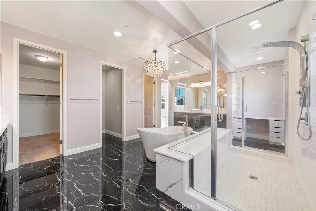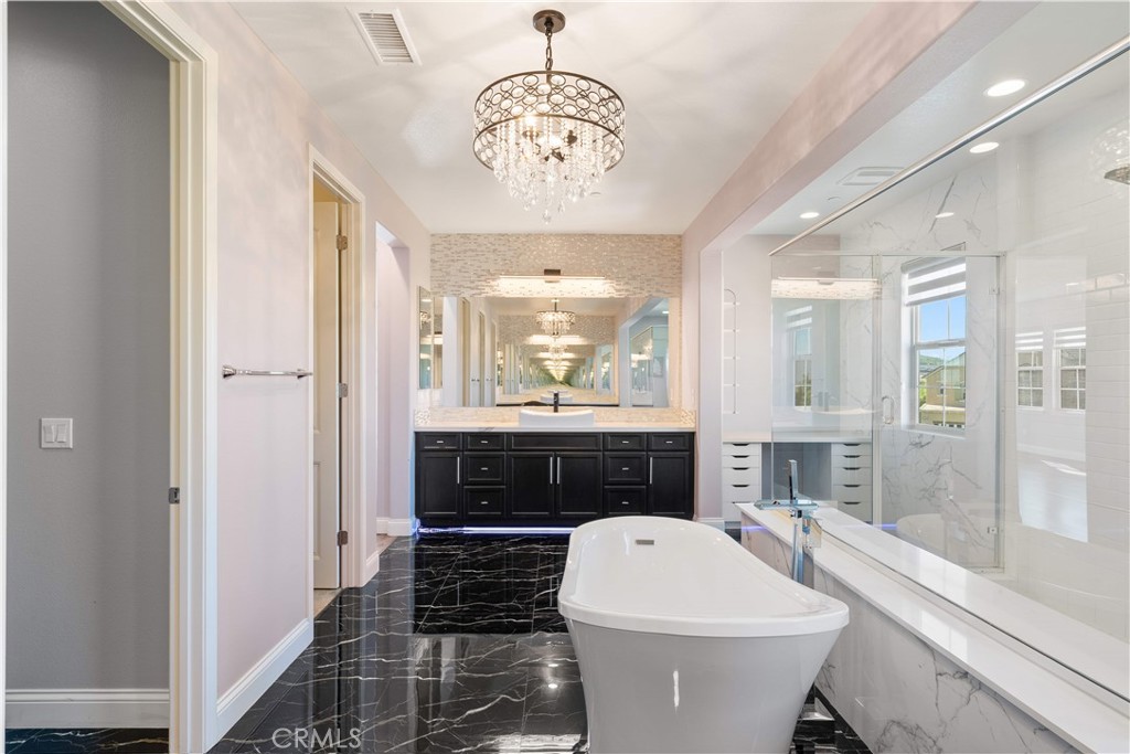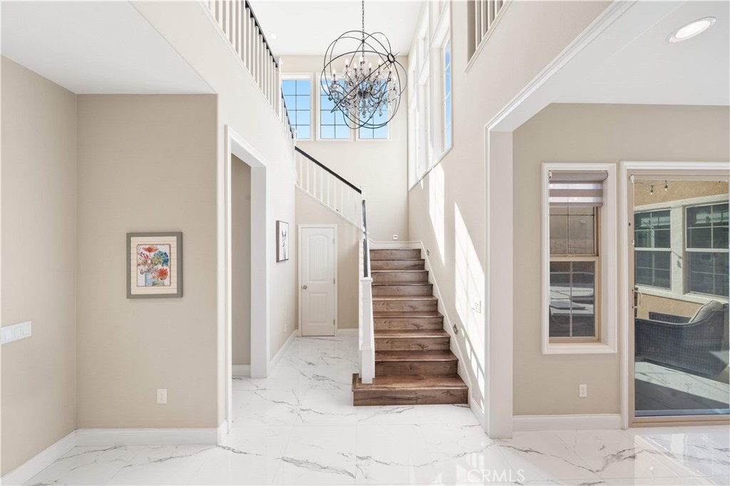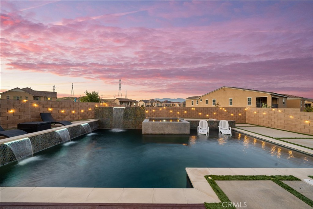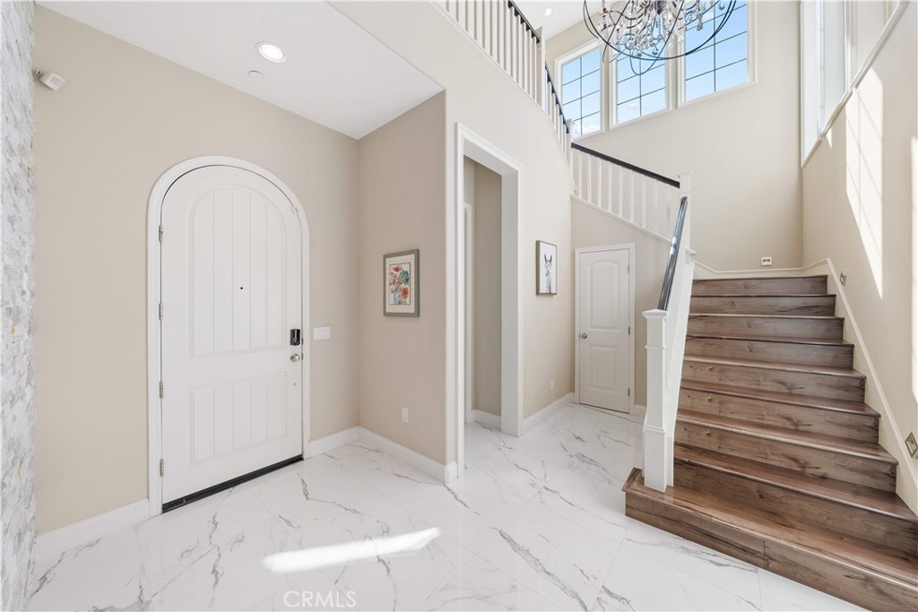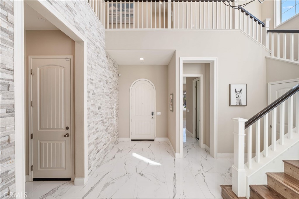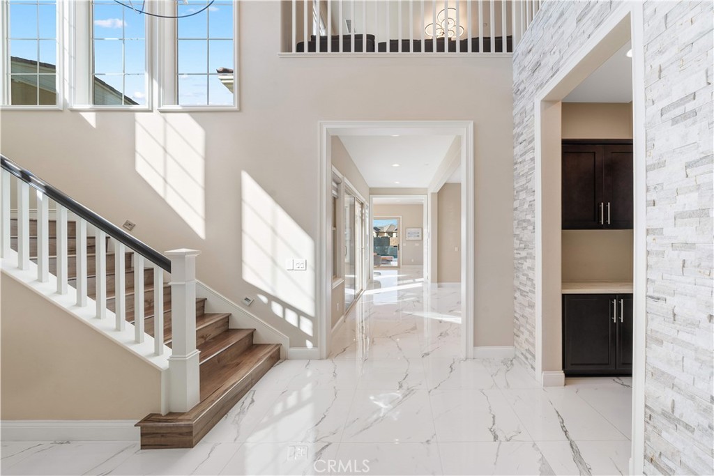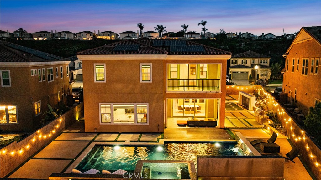 True Luxury Living! Better Than Model Houses! This finest estate in the Prestigious Vila Borba Community of Chino Hills offers 5 bedrooms, 4.5 bathrooms (1 bedroom 1.5 bathrooms downstairs), 3-car garage, with 10,067 sq ft large lot. This stunning residence showcasing designer-quality upgrades and exceptional indoor-outdoor living. A private front courtyard welcomes you into the home, offering both charm and added privacy before stepping into the grand interior. Inside, soaring high ceilings, elegant custom chandelier, window casings, and abundant natural light create a sophisticated and luxurious atmosphere throughout. The great room with large windows that flood the home with natural light. The gourmet chef’s kitchen is a true centerpiece, featuring luxurious granite countertops, an oversized center island, abundant cabinetry, and KitchenAid appliances, including built-in microwave, oven, dishwasher, and cooktop. Large glass doors open to a bright California room, seamlessly blending indoor and outdoor living. A private guest suite with its own full bathroom, ideal for guests or multi-generational living. Upstairs offers a spacious loft ideal for a secondary living area or entertainment space. The luxurious primary suite features a private balcony and a spa-inspired bathroom with soaking tub, oversized walk-in shower, and a large walk-in closet. Three additional bedrooms are also located on the second floor. At the heart of the home is a beautiful interior courtyard highlighted by a dramatic waterfall feature wall, bringing a sense of tranquility and resort-style ambiance. The spectacular resort-style backyard designed for both entertaining and relaxation, features a saltwater pool, spa, with waterfall features, elegant landscape lighting, and beautifully designed outdoor spaces perfect for gatherings or peaceful evenings. 46 pieces solar panels PAID OFF, water softener installed. The three-car garage is finished with upgraded tile flooring and provides generous storage space. Both the front and backyard feature low-maintenance artificial turf landscaping. Located in the highly sought-after Vila Borba community, residents enjoy beautifully maintained surroundings, parks, and convenient access to top-rated schools, shopping, dining, and major freeways. This exceptional property offers luxury, comfort, and resort-style living in one of Chino Hills’ most desirable neighborhoods.