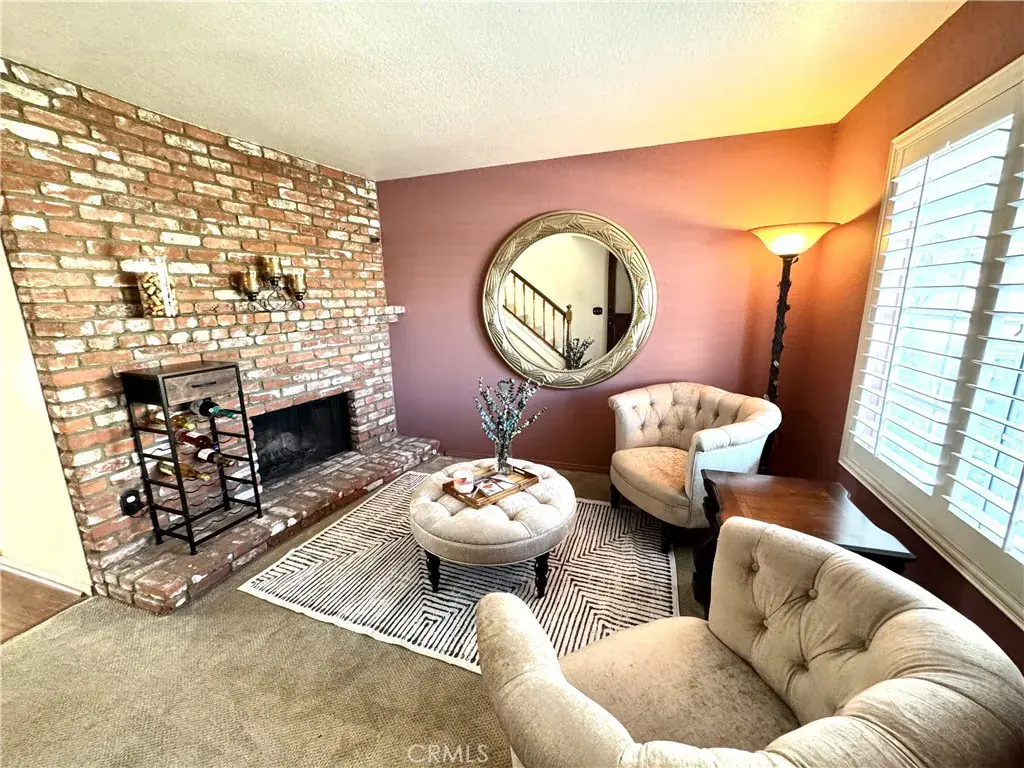 Inside, the living room is warm and inviting with a brick fireplace that works well for relaxing or hosting. The kitchen is updated with stainless steel appliances, granite countertops with full backsplash, recessed lighting, a ceiling fan, and plenty of storage.