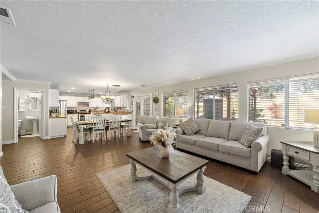 Tucked quietly at the end of a peaceful cul-de-sac, where traffic fades away and privacy begins, this remarkable residence opens like a hidden retreat designed for both comfort and celebration. From the moment you arrive, the extra-wide driveway and graceful palms create a sense of arrival—an inviting prelude to the exceptional home and beyond to a private oasis backyard with pool, spa and custom waterfall plus beautiful wood patio cover.