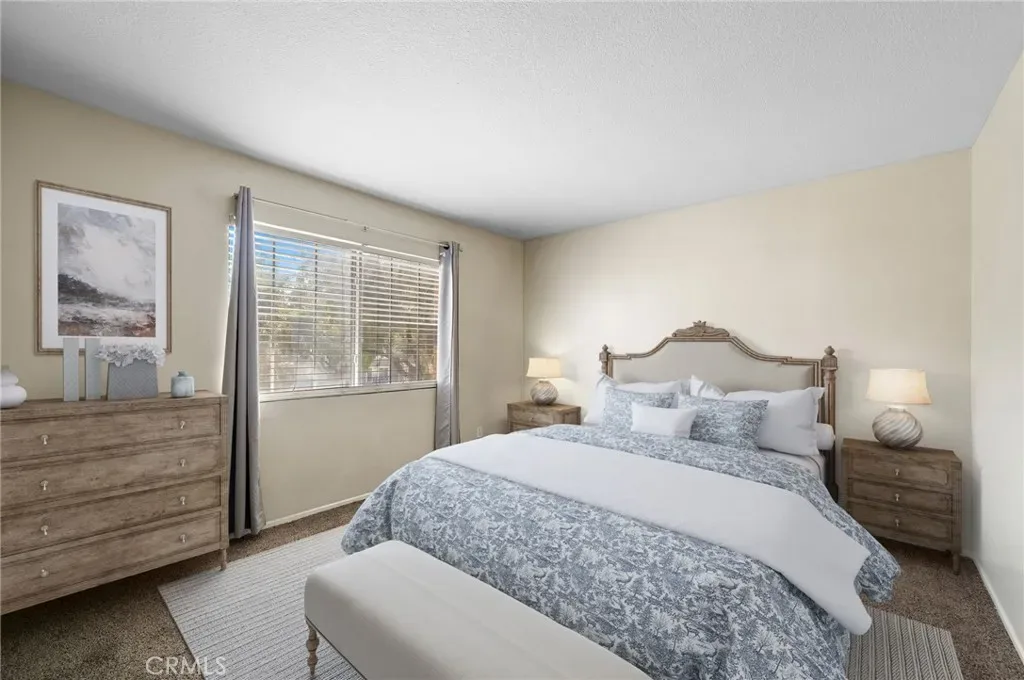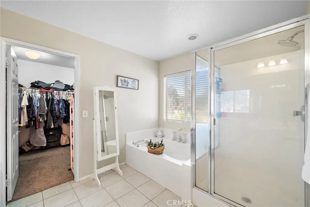 The primary suite is truly exceptional—generously scaled and designed as a personal sanctuary. Sunlight filters through large windows, creating a calm, airy atmosphere. The spa-inspired primary bath features a separate soaking tub and shower, along with a large walk-in closet that provides both luxury and practicality.