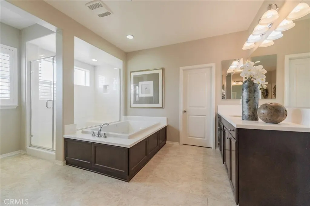 WELCOME TO 14349 GUILFORD AVE CHINO. A 2014 newer home in the highly sought-after College Park community in Chino. LARGER LOT SIZE :8,799 SQ FT .Property Tax 1.35%(Based on a market value of $1.5 million). The neighborhood is beautifully landscaped, safe, quiet, and well-established—often referred to as the “Beverly Hills of Chino”! This property is one of the largest floor plans in the community, with no rear neighbors. The home has been very well maintained and is almost indistinguishable from a brand-new home. Except for the kitchen, the entire first floor features laminate flooring, and the whole house is fitted with plantation shutters and recessed lights. 3-car garage, with one garage completely separate—perfect potential to be converted into a private suite with its own entrance! The entryway features a nearly 20-foot-high ceiling, showcasing grandeur and comfort. On the first floor, there is a bedroom suite ideal for guests or elderly family members, plus an office and a half bathroom. The open-concept kitchen, family room, and formal dining room create a spacious, convenient, and elegant living space. Upstairs, you’ll find four bedrooms, three full bathrooms, a laundry room, and a loft. The east-facing master suite takes up nearly half the floor, with a luxurious bathroom, a walk-in closet, and a large shower. The backyard is square and well designed, featuring 10+ varieties of fruit trees—your own private orchard full of life! Examples include peach, fig, lemon, jujube, dragon fruit, and more. Just a 2-minute walk to a Olympic Park with 2 tennis courts, a basketball court, playgrounds, open lawns, and views of the snow-capped mountains. Only a 5-minute walk to the resort-style clubhouse, which offers two oversized swimming pools, a gym, game room, and more! Don’t miss your dream home!!!