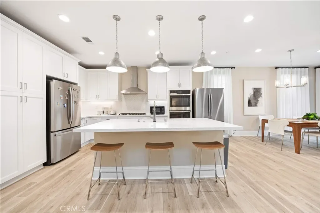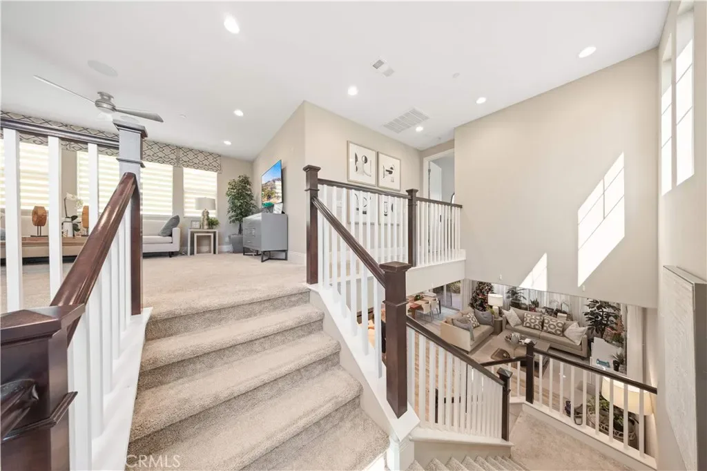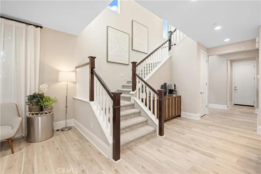 This extraordinary residence was formerly the builder’s model home, featuring extensive professional upgrades. The main level boasts a spacious and inviting living room, a bright and airy dining area, and an exquisite gourmet kitchen appointed with quartz countertops, stainless steel appliances, and white maple cabinetry. Additionally, you are sure to appreciate the main-level bedroom and its accompanying bathroom with a shower. Ascending to the upper level, you will discover a luxurious laundry room complete with a sink and cabinetry, a spacious loft area, two secondary bedrooms sharing a full bathroom, and a magnificent primary suite—featuring an oversized walk-in closet and a private en-suite bathroom finished with quartz countertops. Additional highlights include meticulously designed landscaping, a solar wich was paid off energy system, premium wood-grain vinyl flooring, a whole-house security system, and a surround sound audio system! The home is situated in close proximity to community parks and excellent schools. Furthermore, the community’s robust, high-end amenities offer residents unparalleled convenience and a lifestyle of luxury.