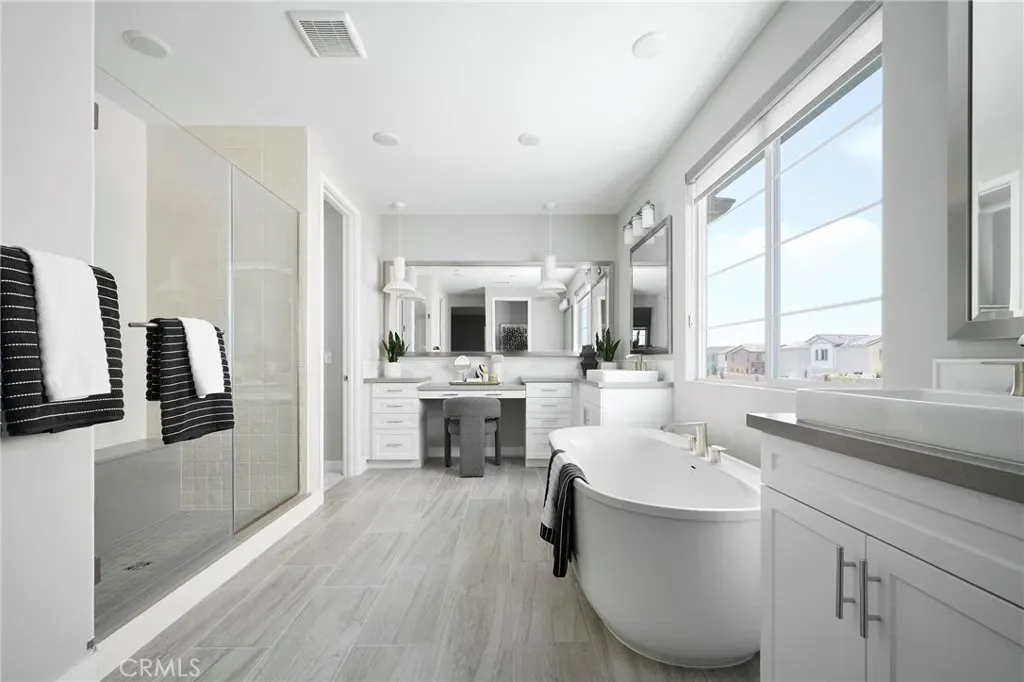 The spacious living areas are complemented by upgraded flooring, custom lighting, and refined architectural details that elevate the entire home. The primary suite offers a spa-like experience with enhanced finishes and a well-appointed bathroom.