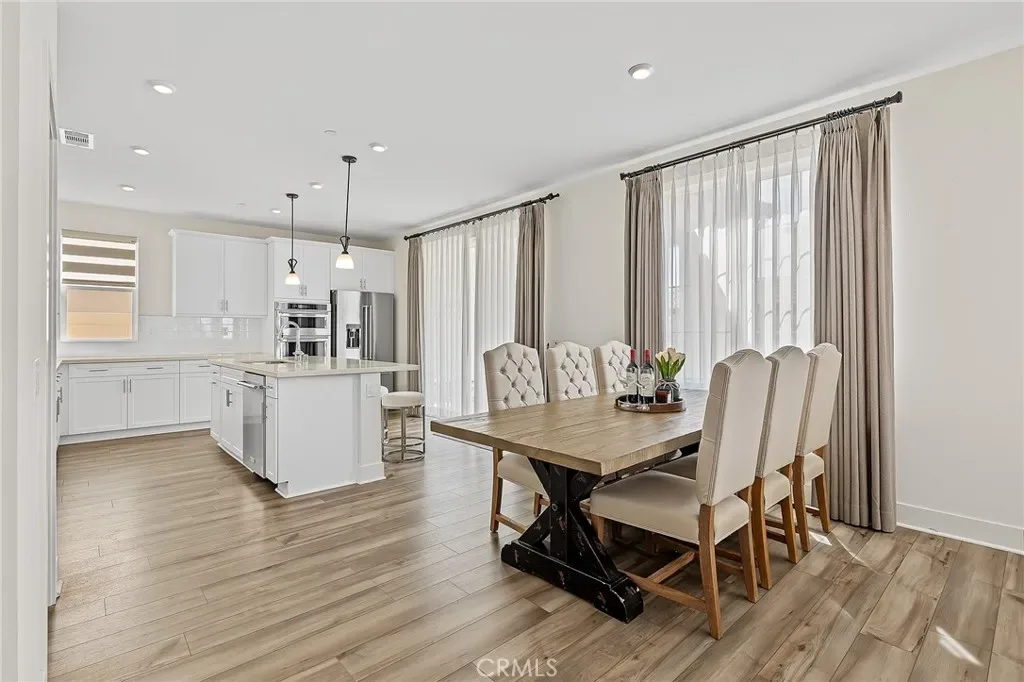 Step through a grand foyer and discover a highly desirable main-level suite to your right, complete with its own private living area, bedroom, and full bathroom—ideal for multi-generational living or guest accommodations. Continue into the heart of the home where an open-concept great room seamlessly blends a spacious living area, an exercise space, and a beautifully appointed kitchen. The kitchen is a chef’s dream, featuring a large center island, modern stainless steel appliances, and a walk-in pantry, all flowing effortlessly into the dining area. Oversized sliding glass doors invite abundant natural light and create a seamless indoor-outdoor connection to the expansive backyard.
