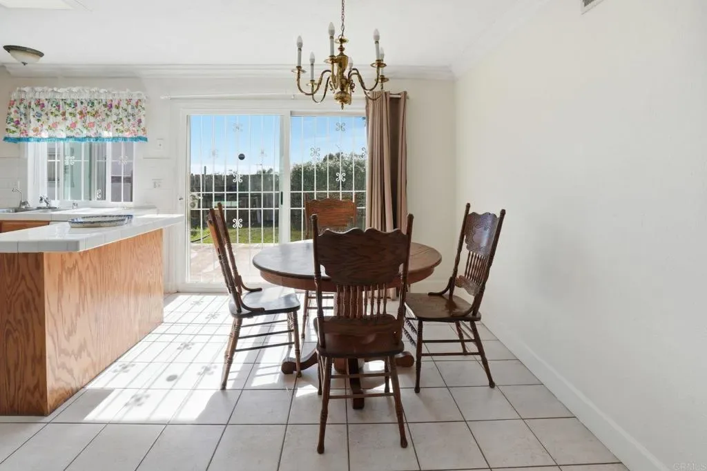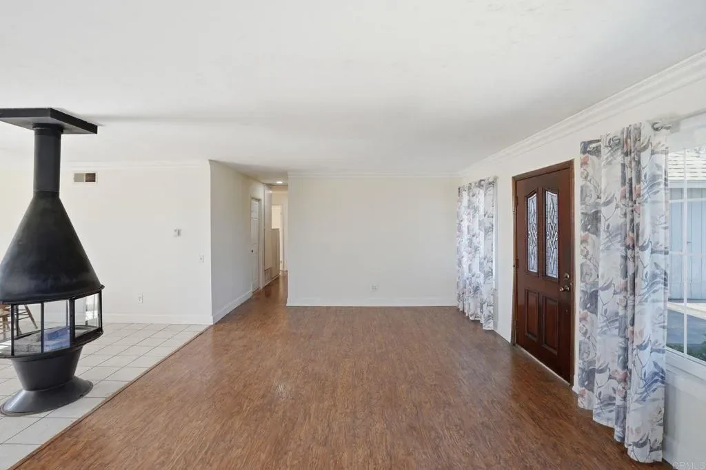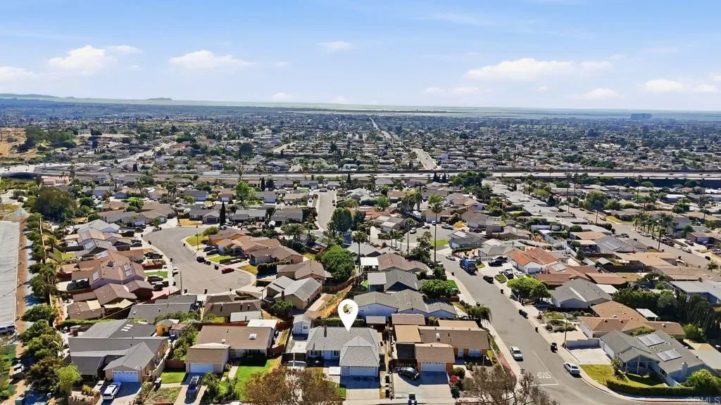 Spacious and inviting, this single-level 4-bedroom, 1.75-bath home is perched on a gentle slope, capturing beautiful sunrise views to the east and sunset vistas to the west. Located just east of the 805 with no HOA, this property offers both freedom and convenience in a well-established, family-friendly neighborhood. Inside, the open floor plan is enhanced by recent upgrades including fresh paint, a new roof, new windows, laminate flooring, and upgraded crown molding and baseboards. The kitchen features tile countertops, a skylight for natural light, a breakfast bar, and upgraded appliances including a gas stove. Ideally situated directly across from Greg Rogers Park and baseball fields, you’ll enjoy easy access to outdoor recreation right outside your door. The home’s elevated position brings in refreshing breezes and a sense of privacy and tranquility. Step outside to a spacious and private backyard, complete with three detached storage/work sheds—perfect for hobbies, projects, or extra storage. One of the standout features is the exceptional off-street parking: a gated RV/boat parking area with hookups, a two-car garage, and plenty of additional space for vehicles and recreational toys. Conveniently located near schools, shopping, dining, and with quick access to the 805, this home offers a great opportunity to add your personal touch and make it your own.