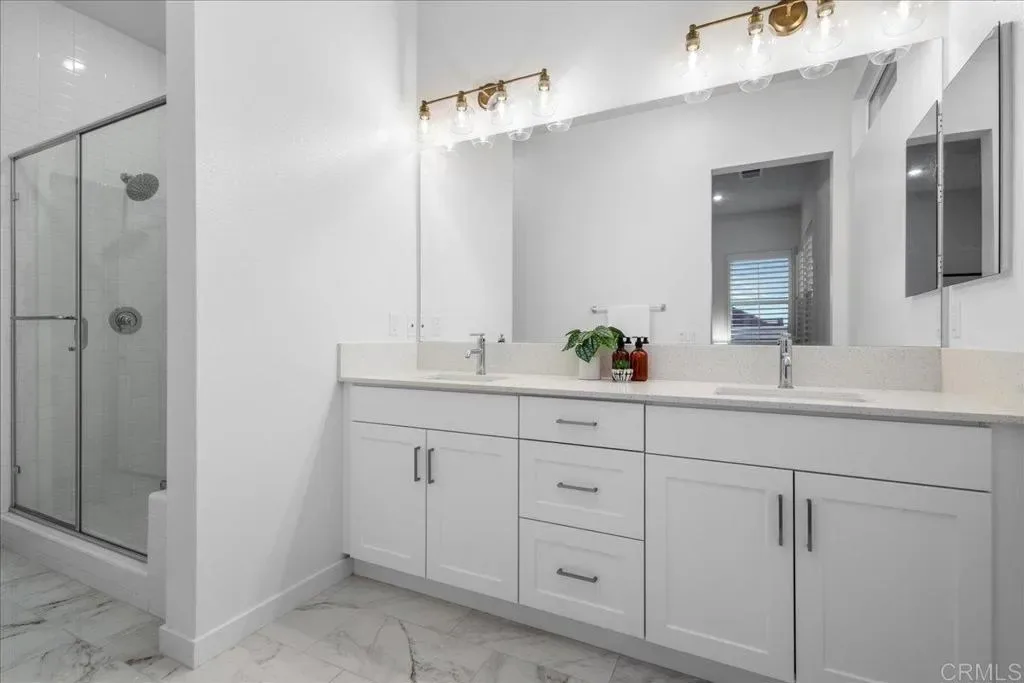 Downsizing but not downgrading? Welcome to your future forever home! This 55+ community will impress you as you drive in. Recently built in 2025 this gorgeous home has all the upgrades and non of the headaches, move in ready. Over $150,000 in upgrades from flooring, to back patio with pavers and fire pit, wood shutters through out, light fixtures, custom cabinetry, office desks built ins, soft water filtration system and paid solar panels. In the newest community in Otay Ranch, from the Cota Vera Master Plan, introducing Haddington detached homes, from gated entry to a lap pool inside Haddington immediate area, many more fun and easy activities around, from pools, parks, recreations centers,BBQ’s, Indoor fitness center and much more to discover.